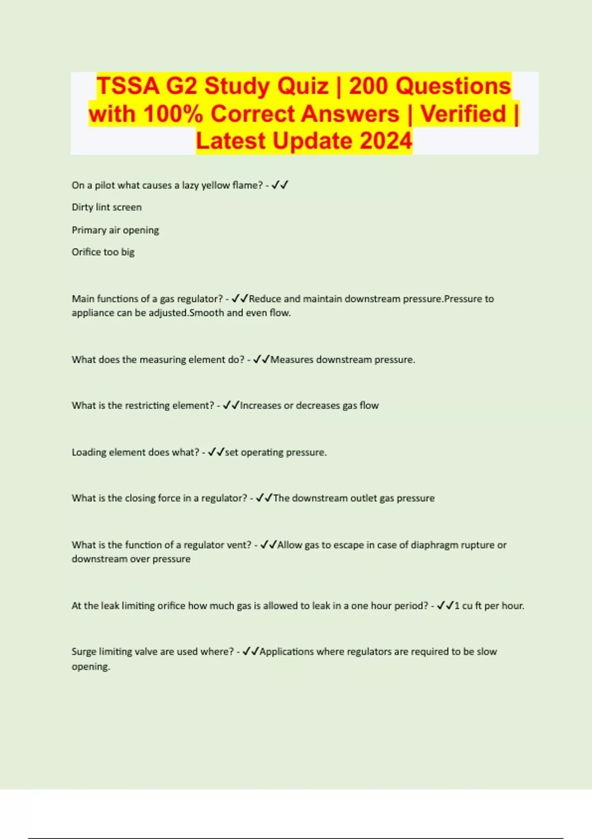 TSSA G2 Study Quiz | 200 Questions with 100% Correct Answers | Verified | Latest Update 2024