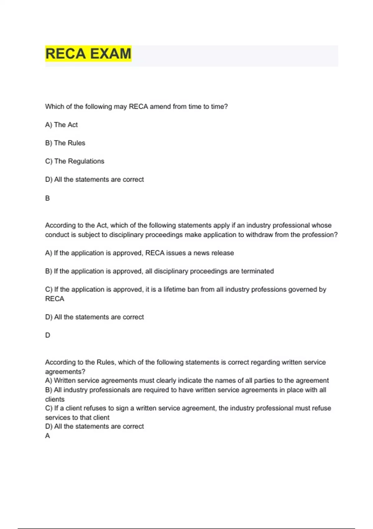 RECA PRACTICE EXAM QUESTIONS