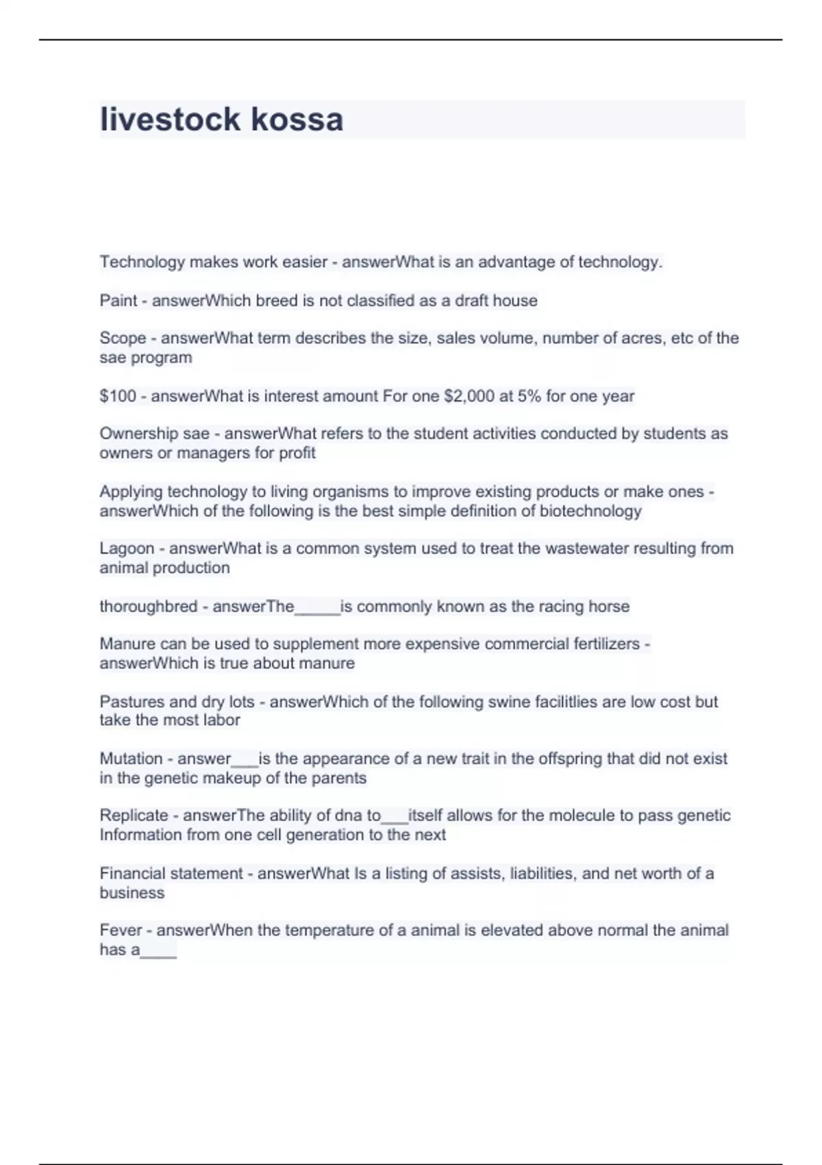 Exam (elaborations) Accounting KOSSA Test Questions and Answers Graded A+ Exam (elaborations) Administrative Support KOSSA Review Questions and Answers 100% correct Exam (elaborations) Animal Science KOSSA Questions with correct Answers Exam (elaborations) Business KOSSA Practice Questions and Answers 2024 Exam (elaborations) Business Mana