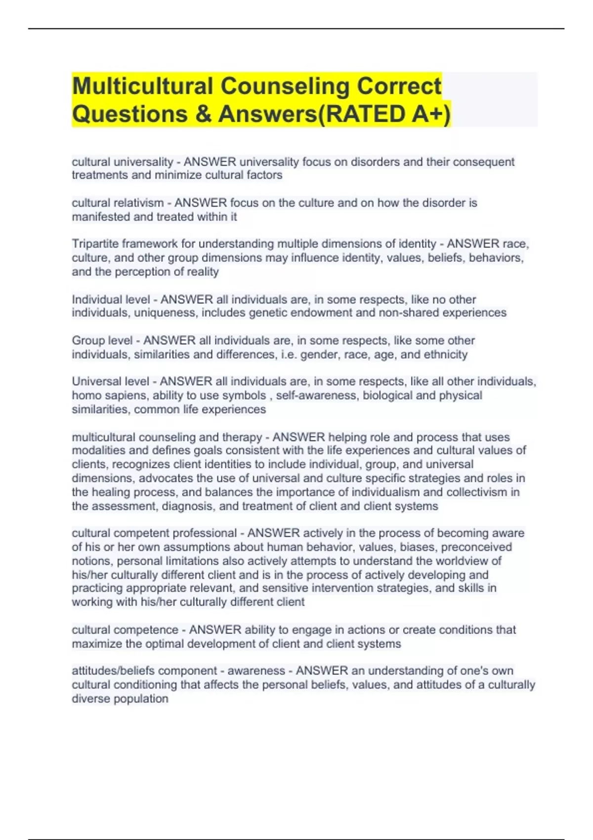multicultural counseling Complete Questions & Answers(RATED A+)PACKAGE DEALmulticultural counseling Complete Questions & Answers(RATED A+)PACKAGE DEALmulticultural counseling Complete Questions & Answers(RATED A+)PACKAGE DEALmulticultural counseling Complete Questions & Answers(RATED A+)PACKAGE DEALmulticultural counseling Complete Questions & Answ