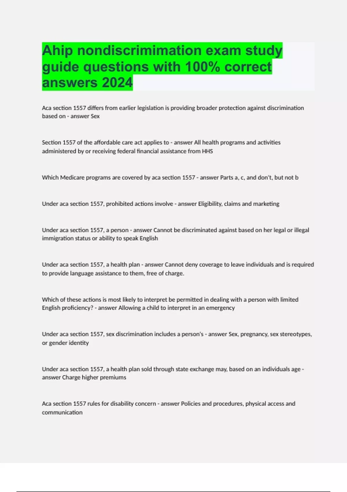 AHIP NON-DISCRIMINATION TESTS COMPILATION BUNDLE 2024/25|GUARANTEED SUCCESS