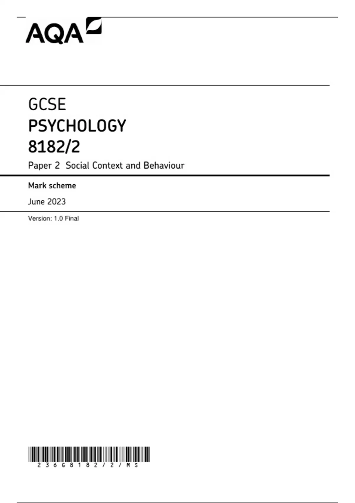 GCSE AQA May 2024 Psychology Paper 2 Mark Scheme