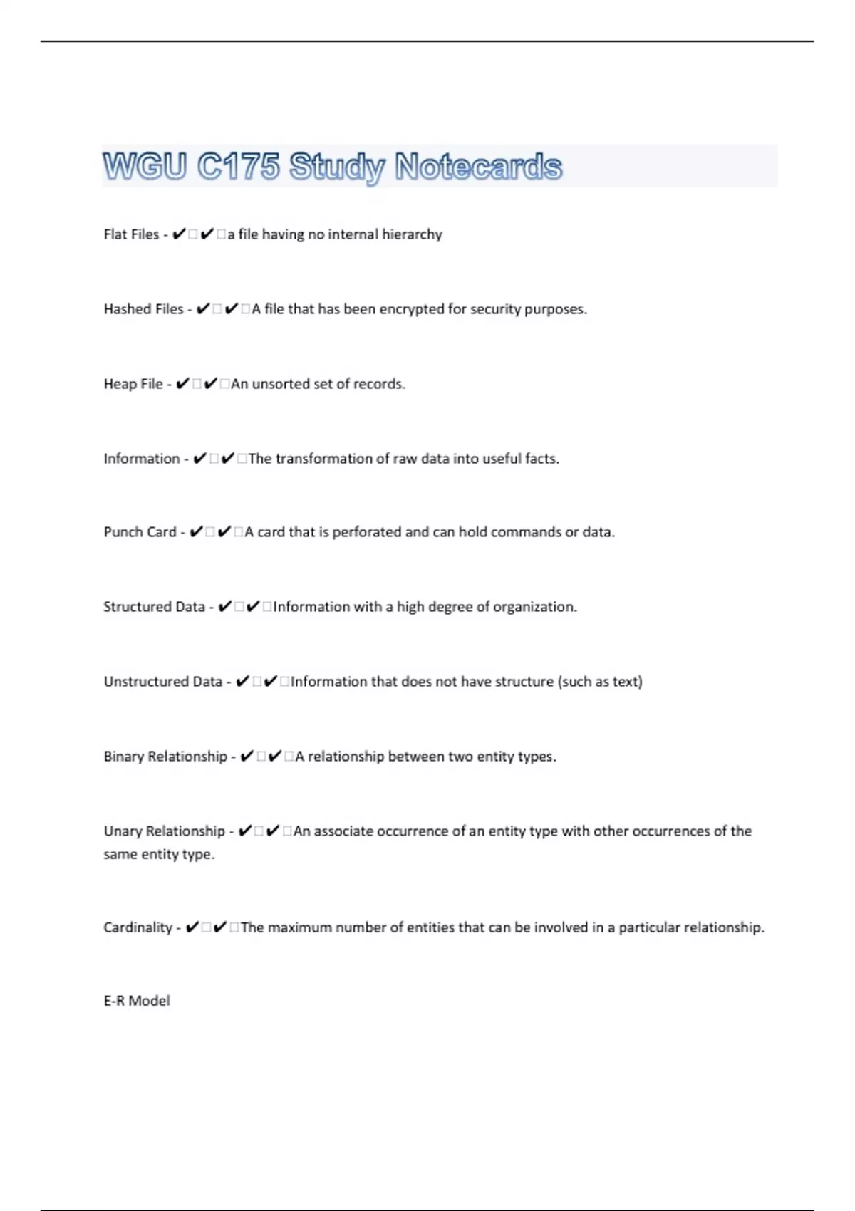 WGU C175 Study Notecards 123 Questions with 100% Correct Answers | Verified | Latest Update
