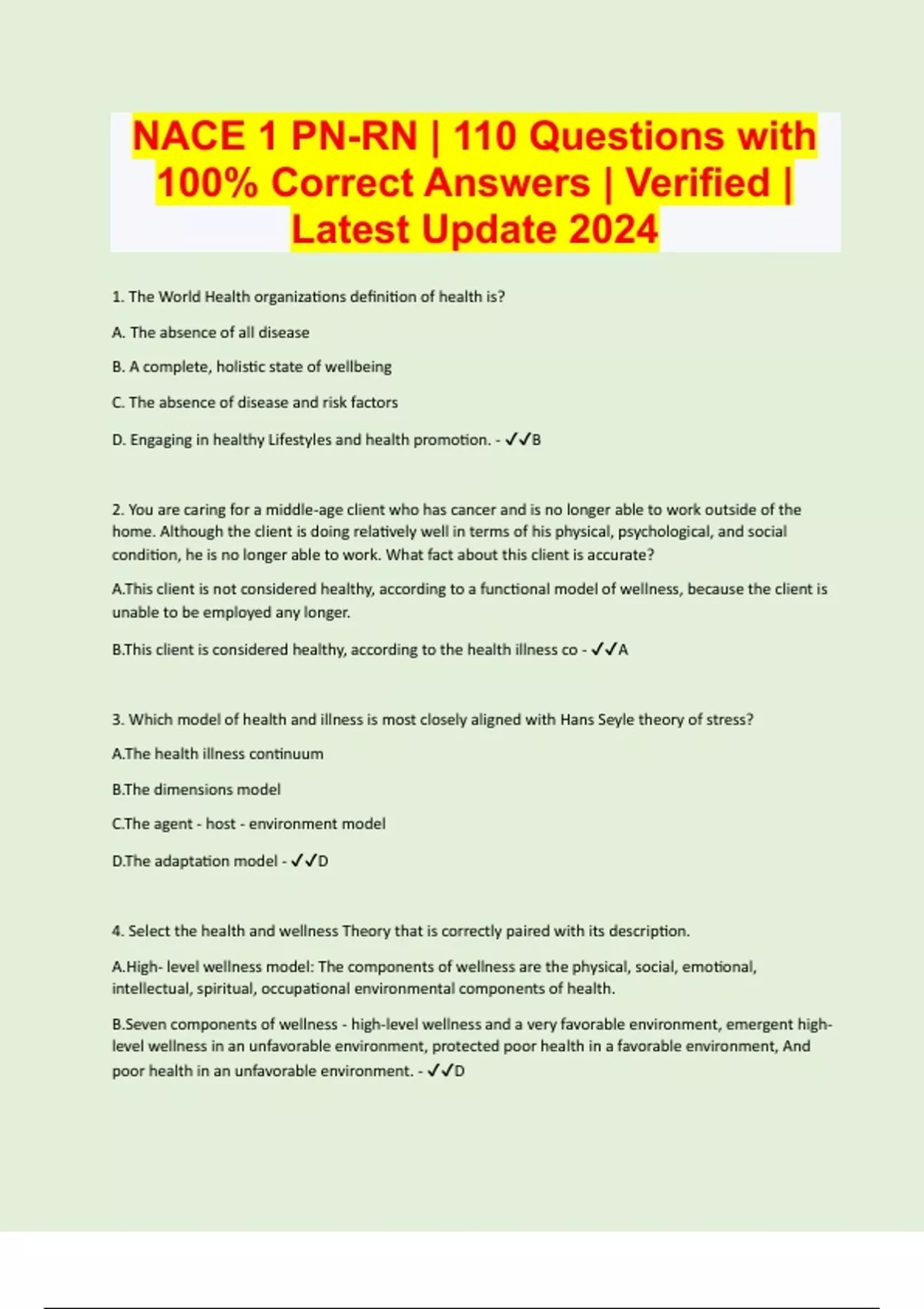 NACE PN TO RN | 100 Questions with 100% Correct Answers | Verified | Latest Update 2024