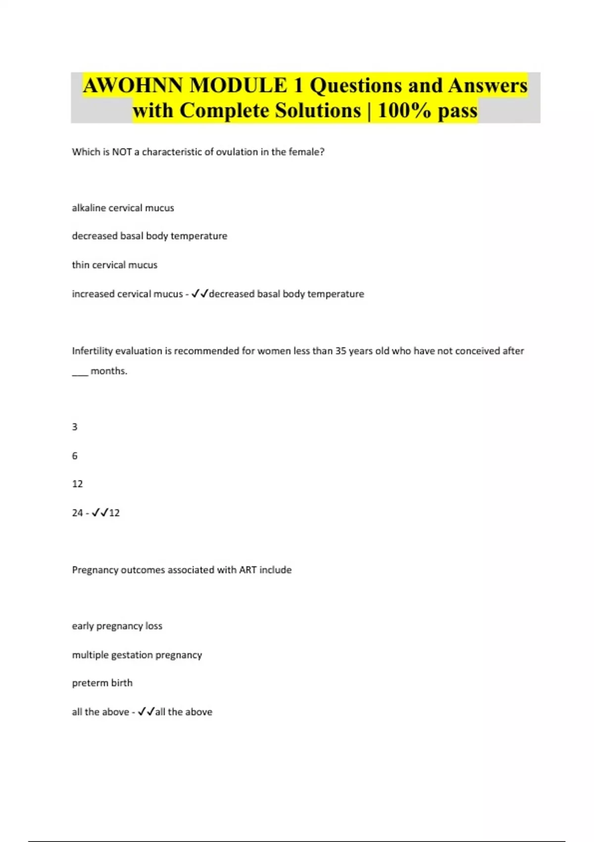 AWOHNN MODULE 1 Questions and Answers with Complete Solutions | 100% pass