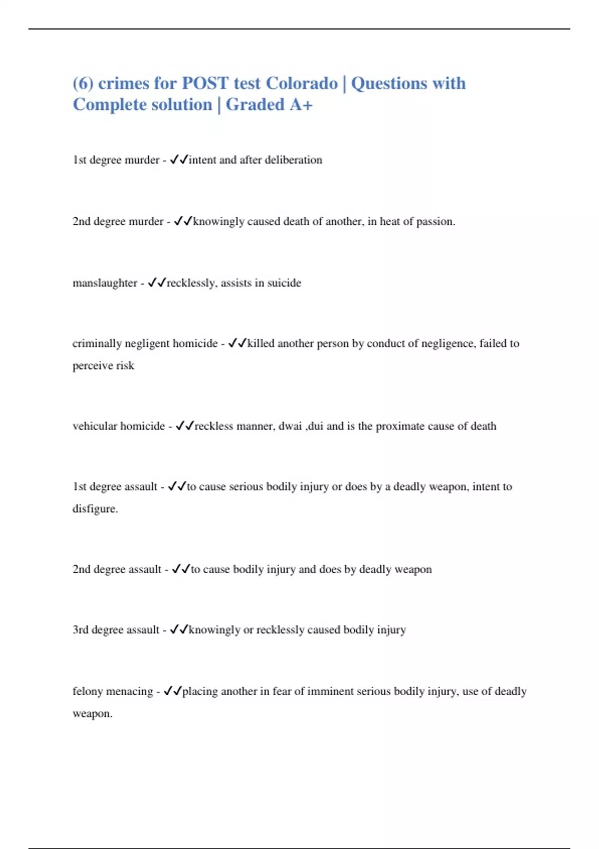 6) crimes for POST test Colorado | Questions with Complete solution | Graded A+