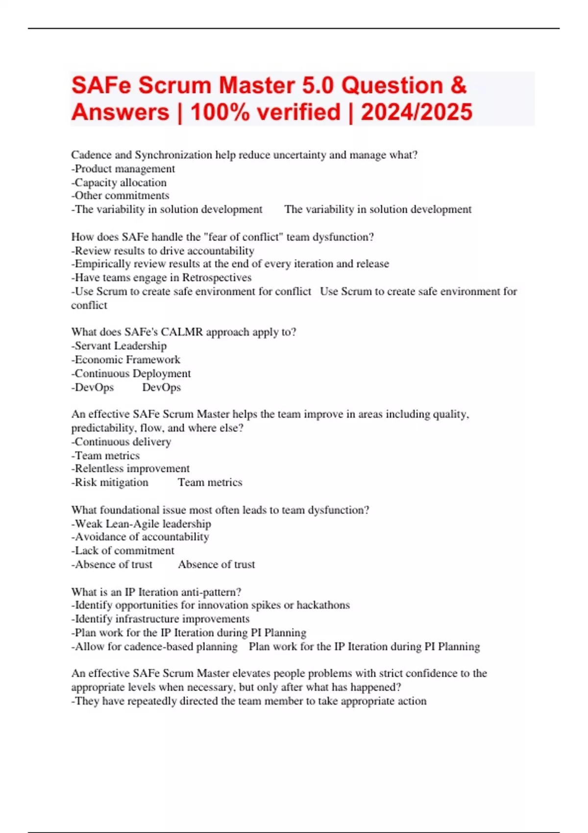 Exam (elaborations) SAFe Scrum Master Practice Test | 100% verified | 2024/2025 SAFe Scrum Master Study Guide 5.0 | Latest 2024/2025 Scaled Agile Framework / SAFe Scrum Master Certification Prep (SSM) | Latest 2024/2025 SSM TEST REVIEW | QUESTIONS AND ANSWERS | UPDATED SSM Certification | questions and answers | latest 2024/2025