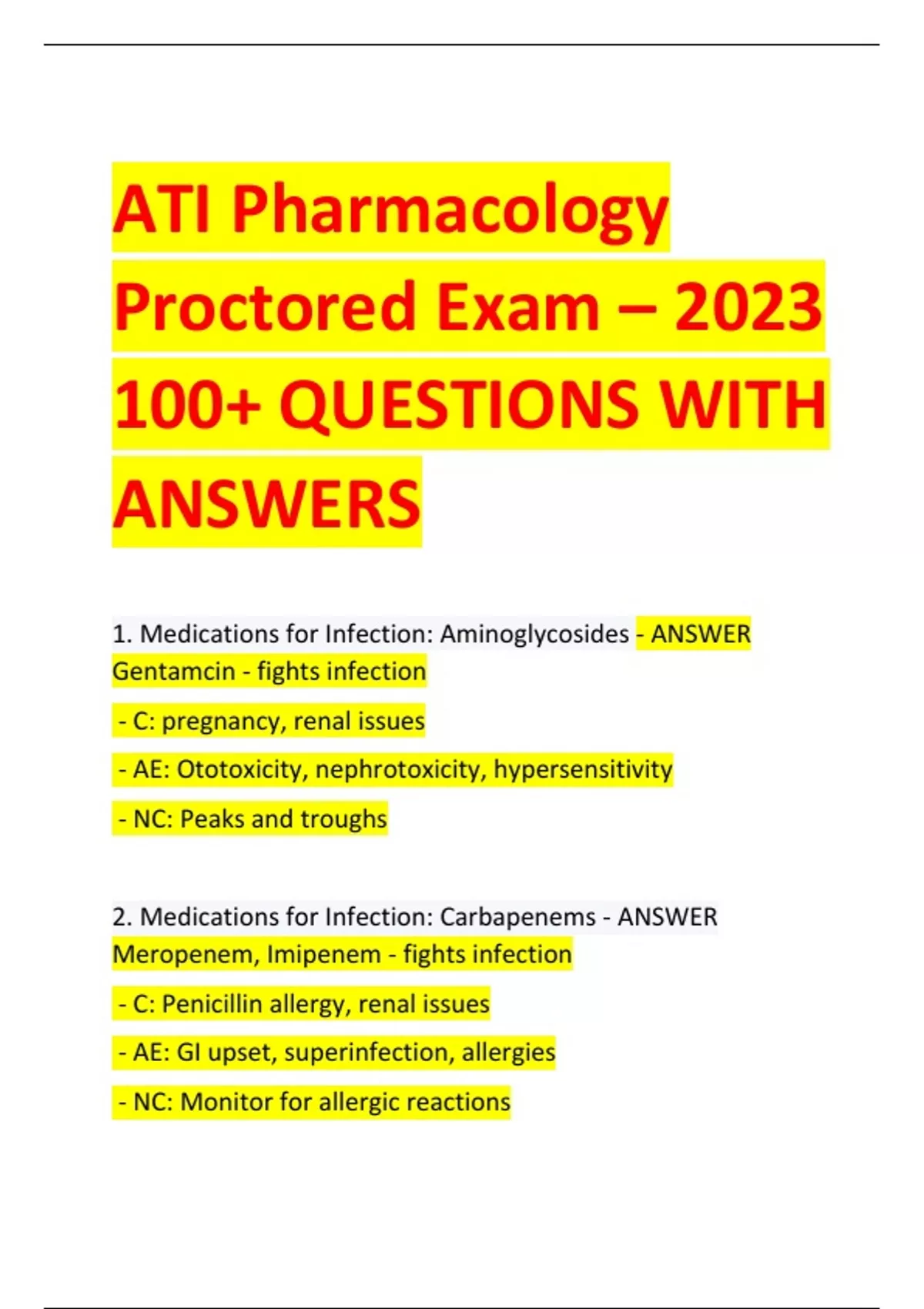 ATI PHARMACOLOGY ATI PHARMACOLOGY COMBINED SET TESTS