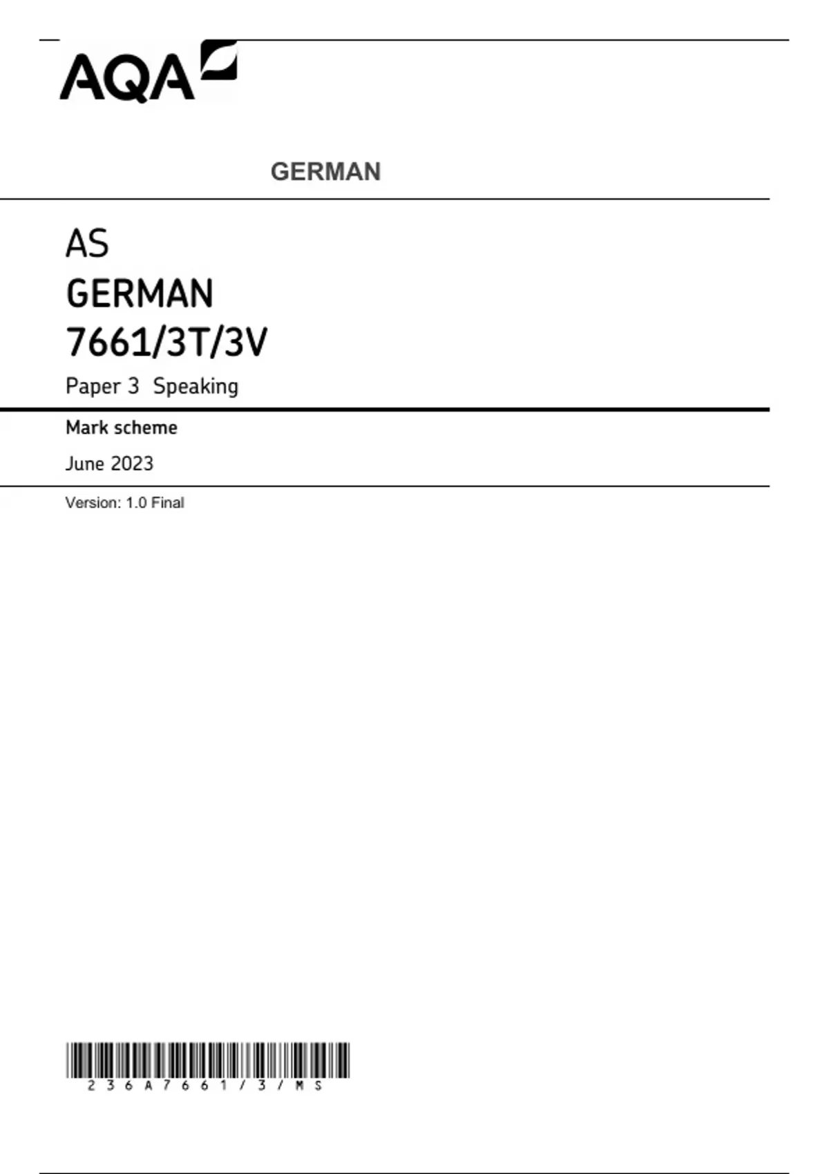 AQA 2023 AS GERMAN 7661/3T/3V Paper 3 MS