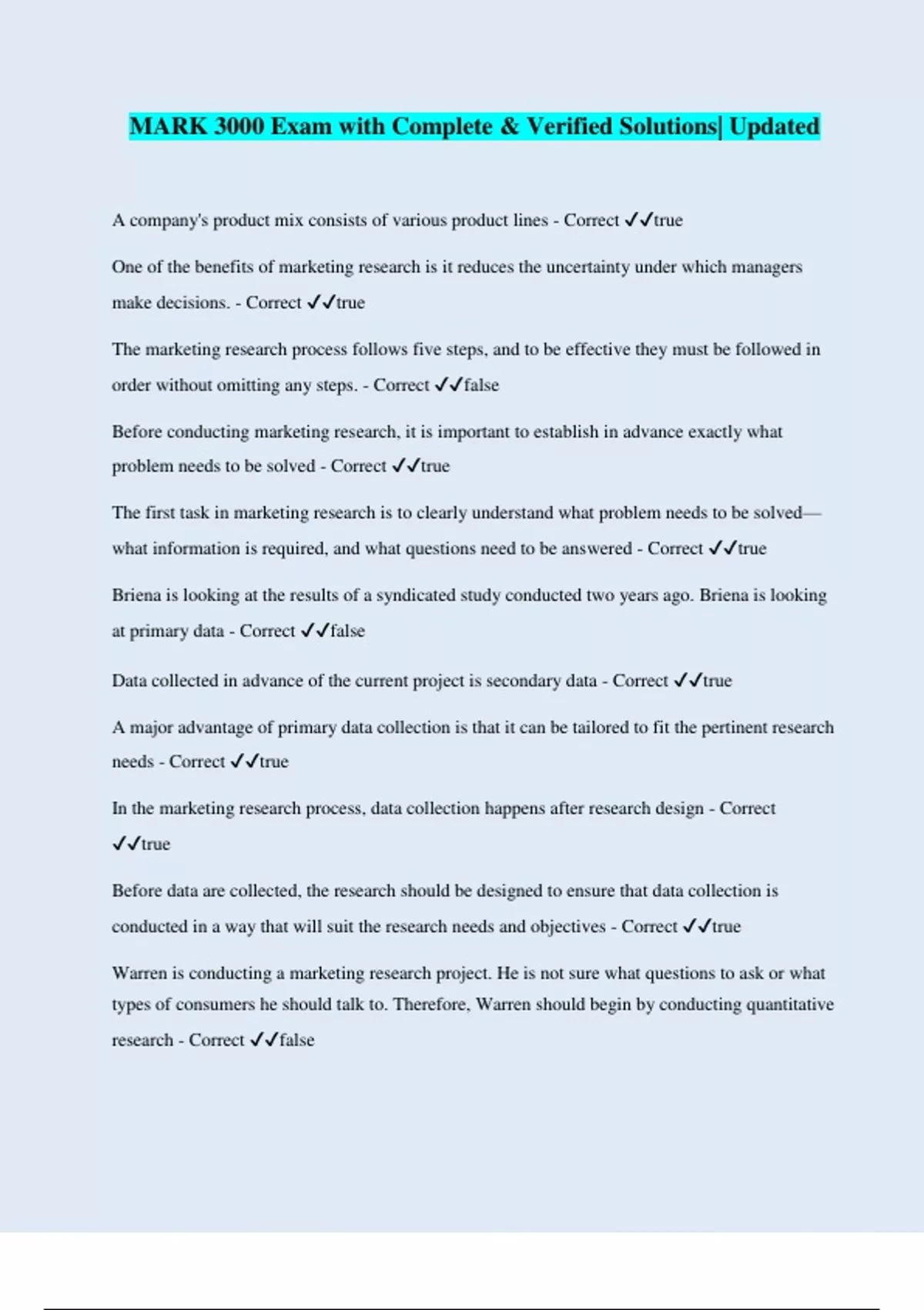 MARK 3000 Exam with Complete & Verified Solutions| Updated