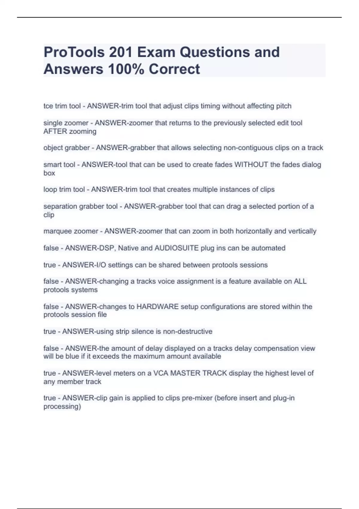 Pro Tools 201 EXAM STUDY BUNDLE WITH COMPLETE SOLUTIONS
