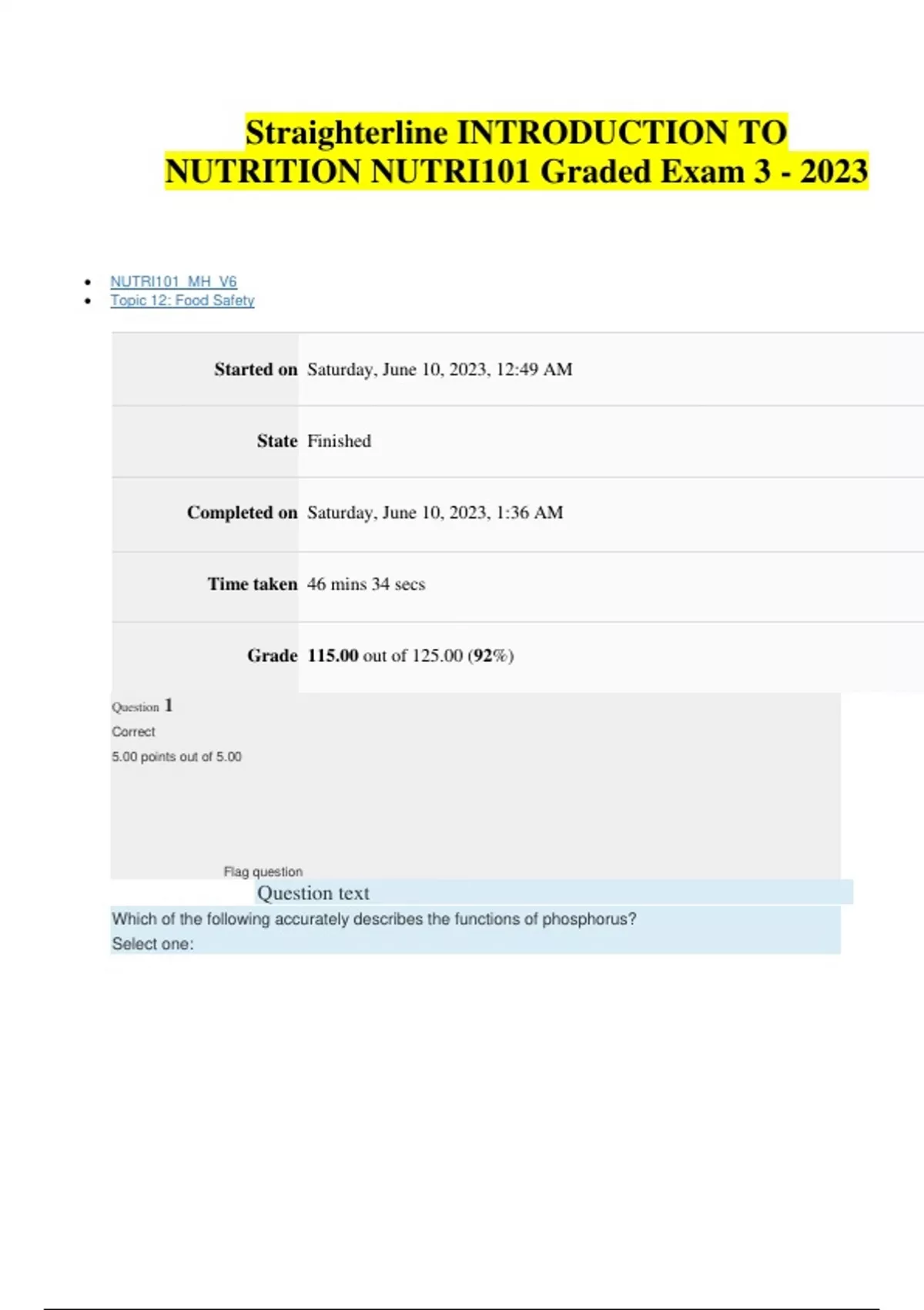 Straighterline INTRODUCTION TO NUTRITION Bundled Exams with Complete Solution 2023/24 |100% Pass