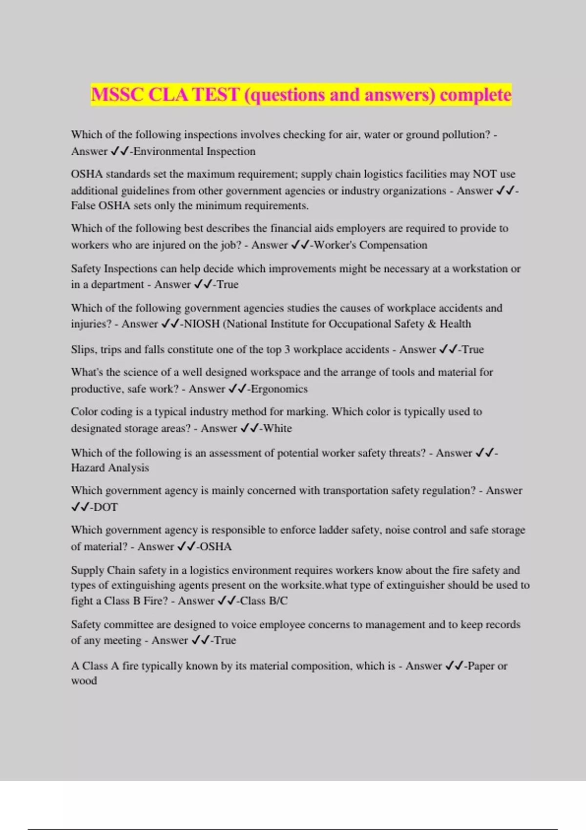 MSSC Safety Bundled Exams Questions and Answers | 100% Verified and Updated 2024 | Graded to Pass!!