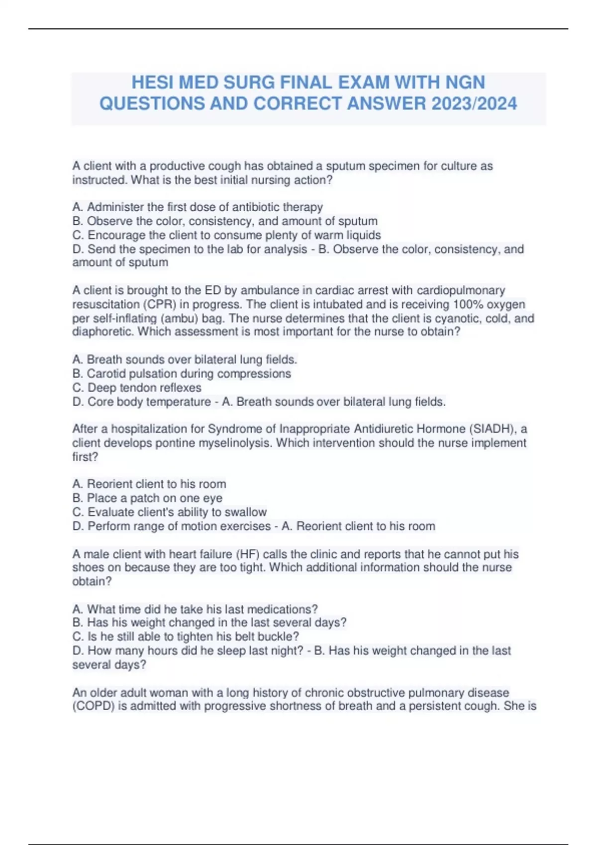 PACKAGE DEAL FOR HESI MEDICAL SURGICAL NURSING EXAMS AND TEST BANKS| LATEST UPDATE 2024