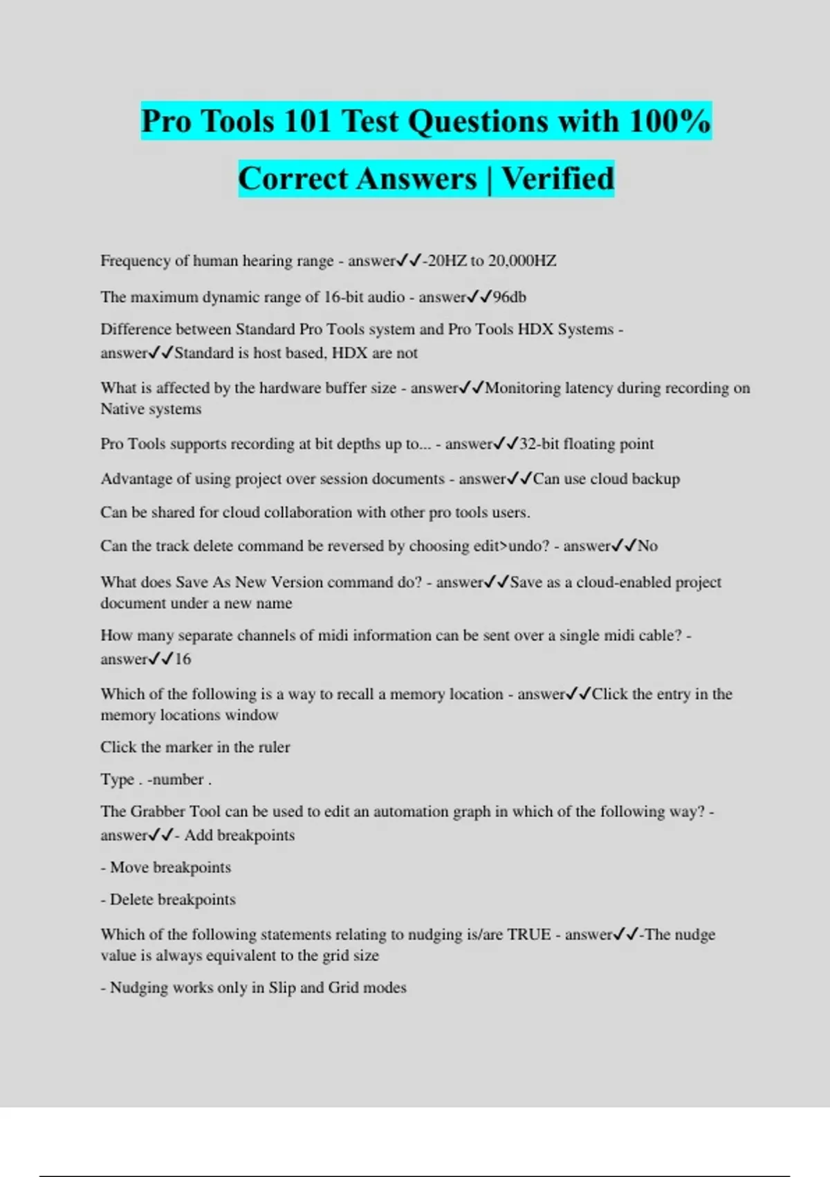 PRO TOOLS 101 EXAM BUNDLE WITH COMPLETE SOLUTIONS GRADED A+