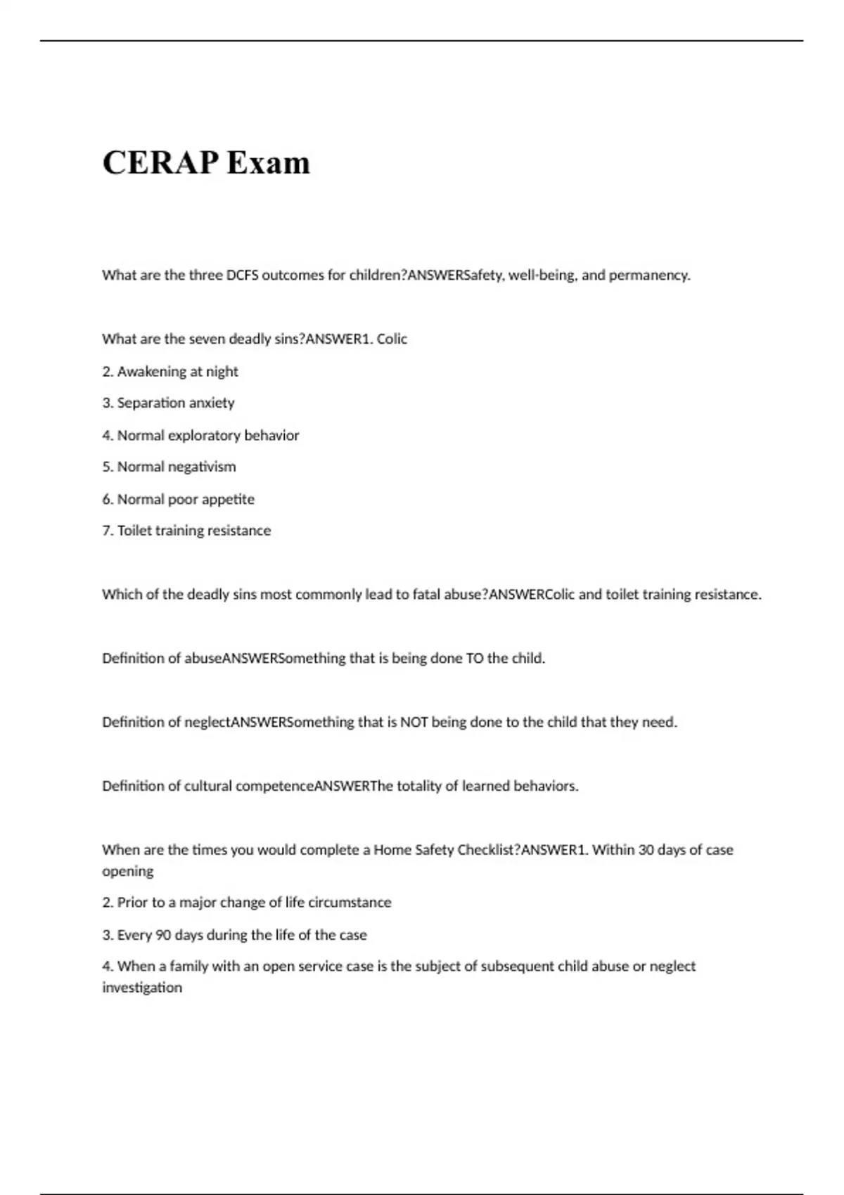 SOWK 361 CERAP EXAM REVIEW QUESTIONS AND ANSWERS 2024