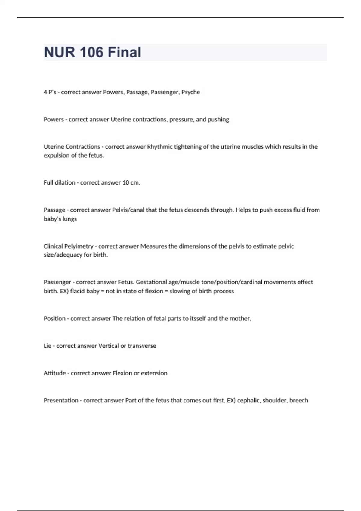 package deal for NUR 106 EXAM 2023/2024