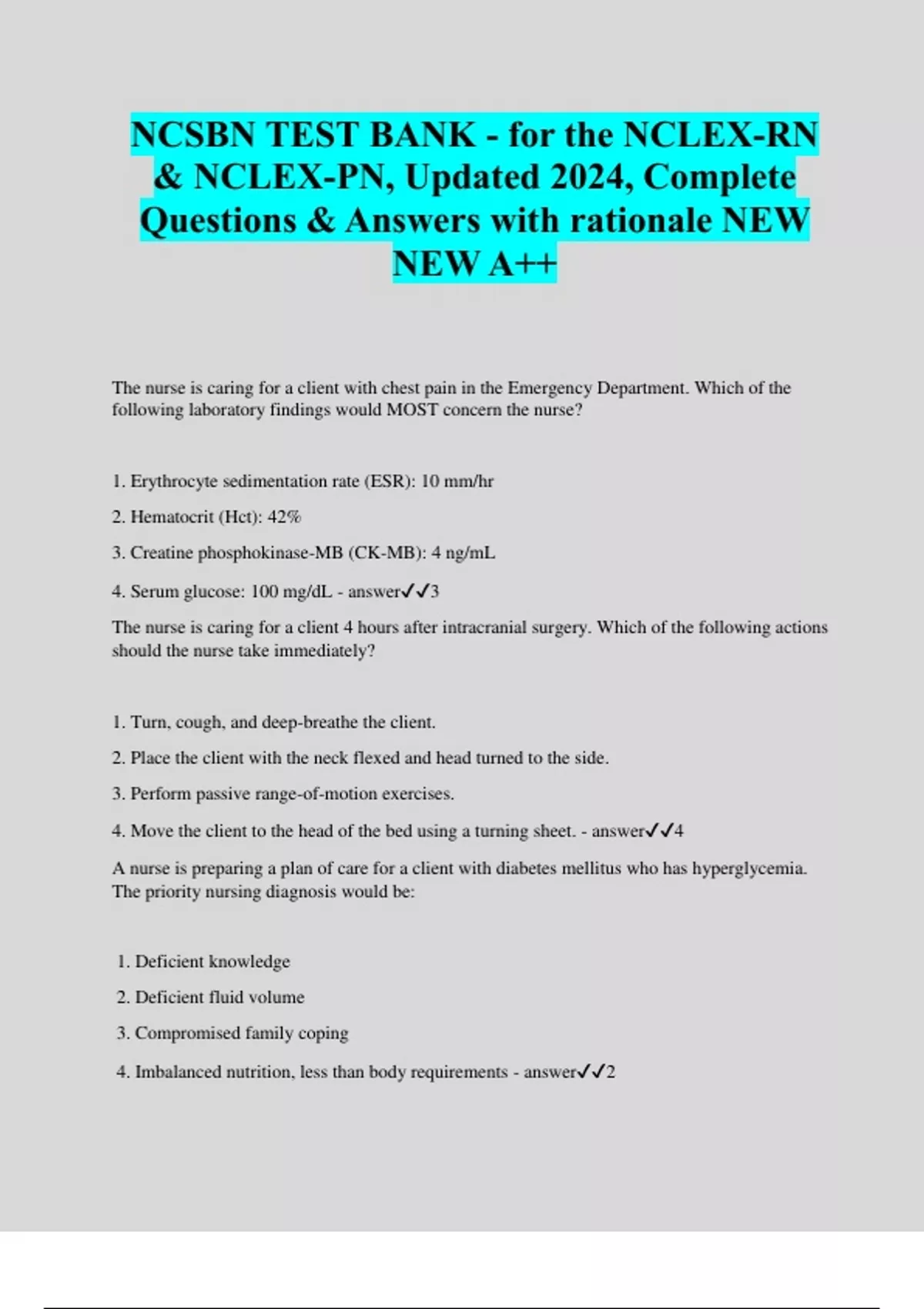 NCLEX-RN TEST PREP QUESTIONS AND ANSWERS