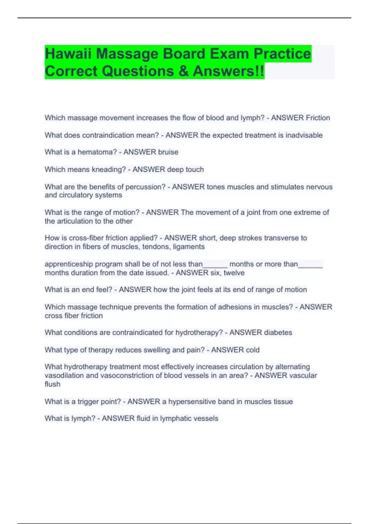Hawaii massage exam, mock tests Correct Questions & Answers(GRADED A+)