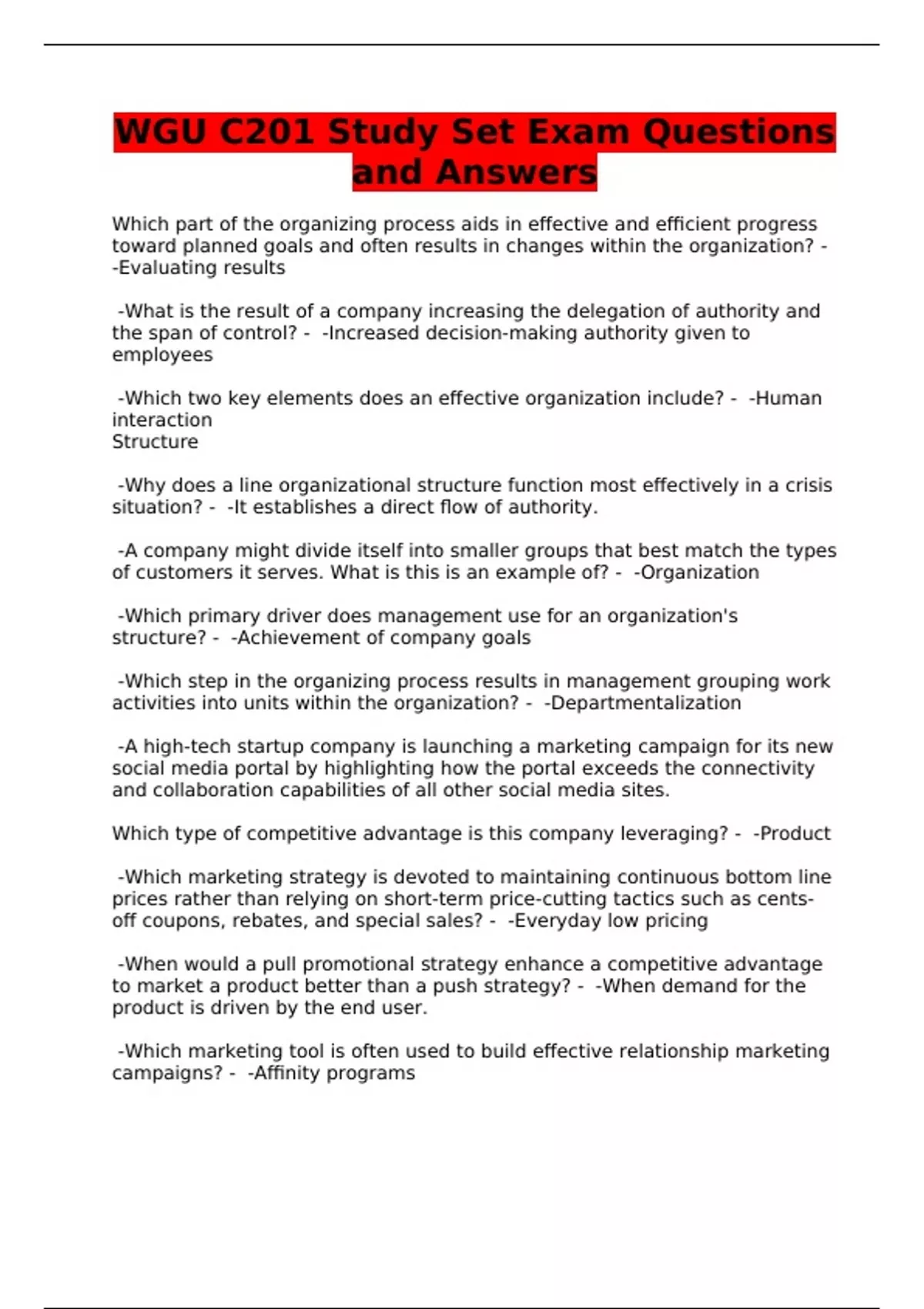 C201 WGU Pre-Assessment Exam/58 Questions & Answers
