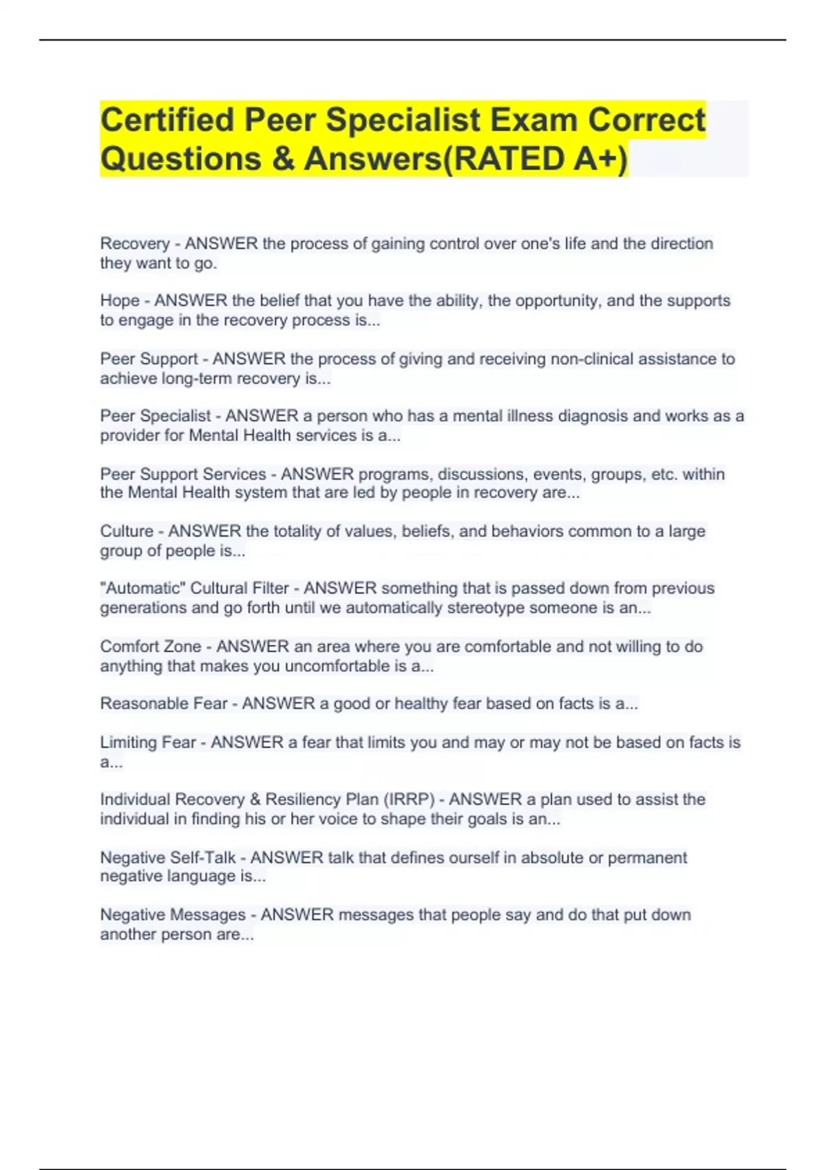 Certified Peer Specialist Exam Correct Questions & Answer(RATED A+)