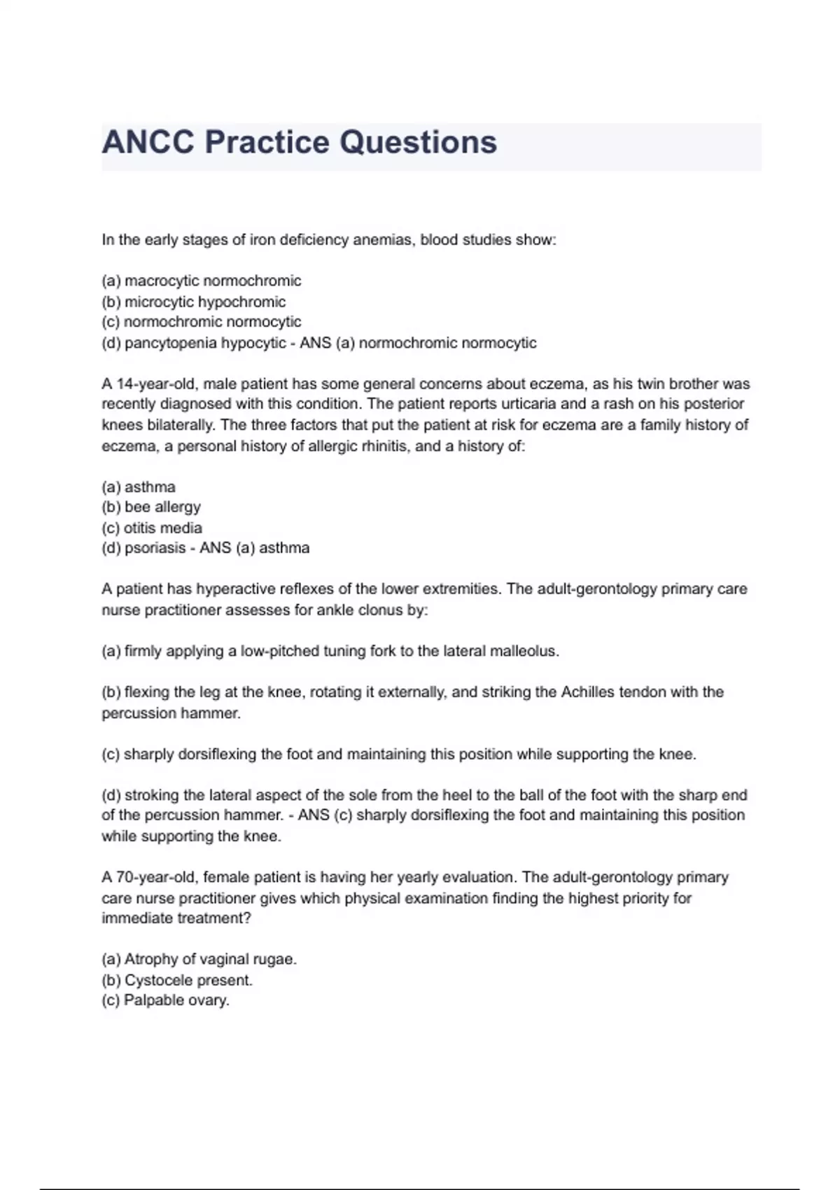 ANCC Practice Questions & Completed Answers Latest Updates. ALL BUNDLED HERE!!!