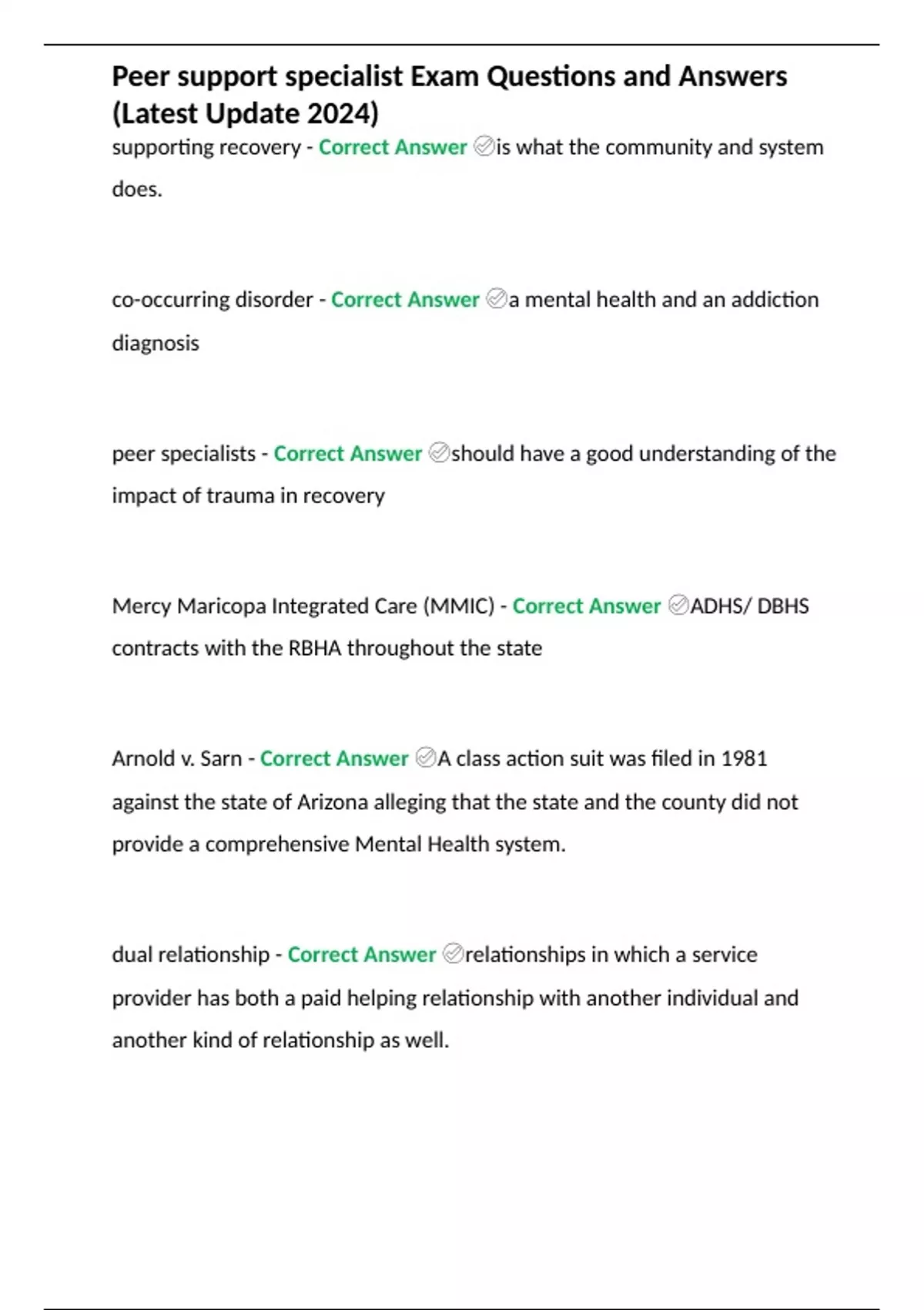 Peer Support Specialists Exam Questions and Answers (2024 ) Package deal with 45% discount