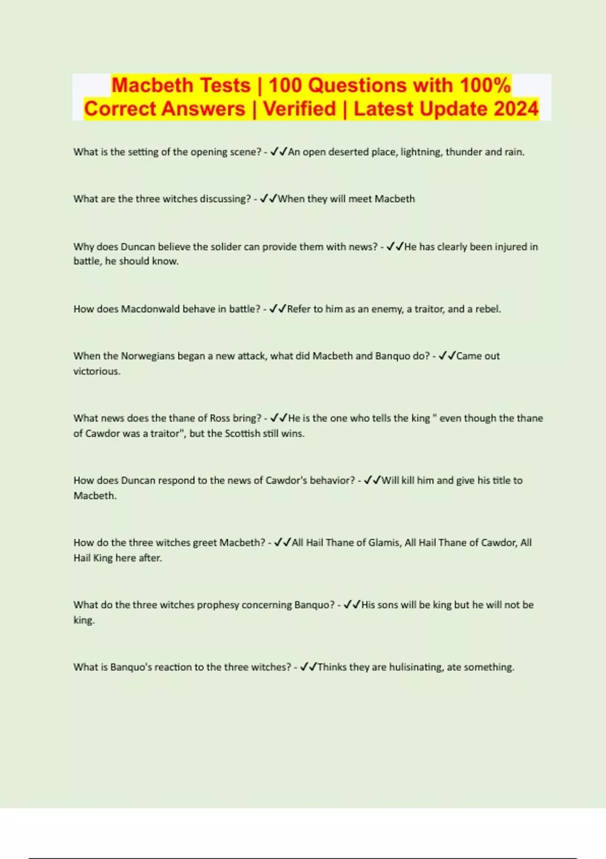 Macbeth Tests | 100 Questions with 100% Correct Answers | Verified | Latest Update 2024