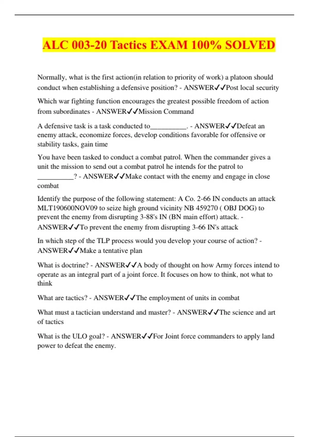 ALC 003-20 Tactics EXAM 100% SOLVED
