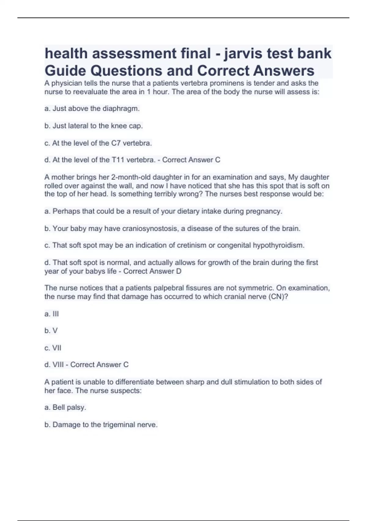 health assessment final - jarvis test bank Guide Questions and Correct Answers