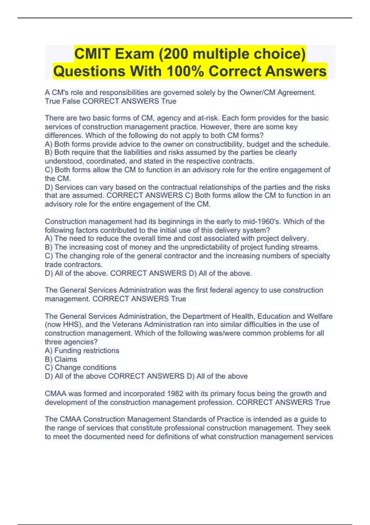 CMIT Exam (200 multiple choice) Package Deal Questions And 100% Verified Answers