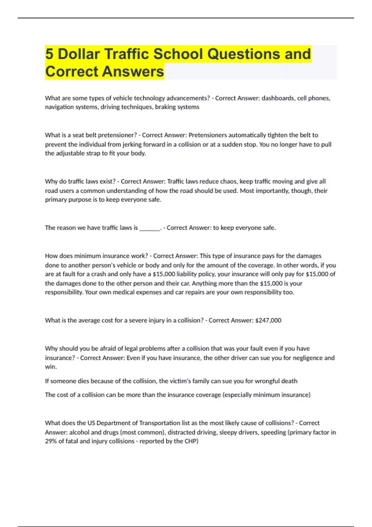 5 Dollar Traffic School Questions with Complete Solutions Bundle Compilation