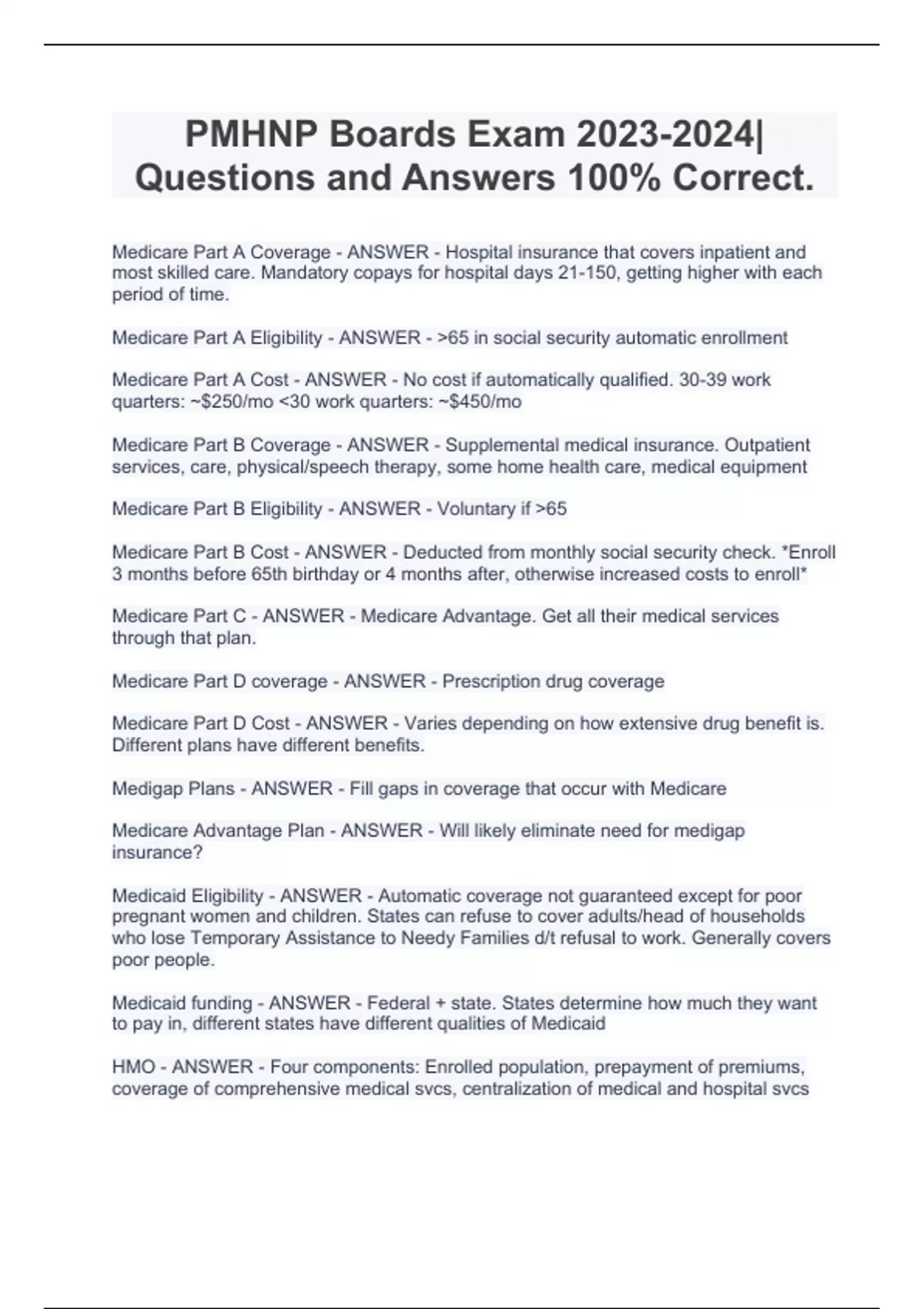 ANCC PMHNP Certification EXAM BUNDLE(COMPLETE PACKAGE) 2023– 2024 Questions with Complete Solutions.
