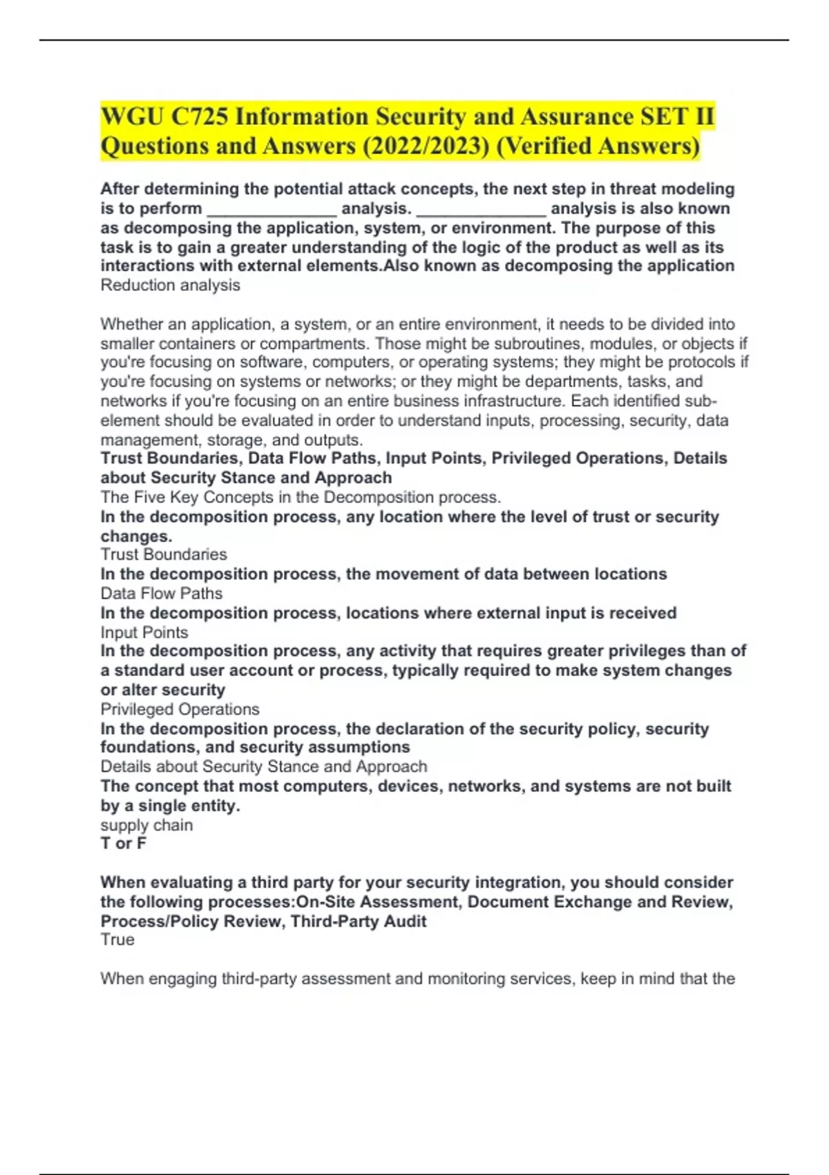 WGU, Information Security and Assurance, SET VERIFIED Questions and Answers (2022/2023) A+ GRADED