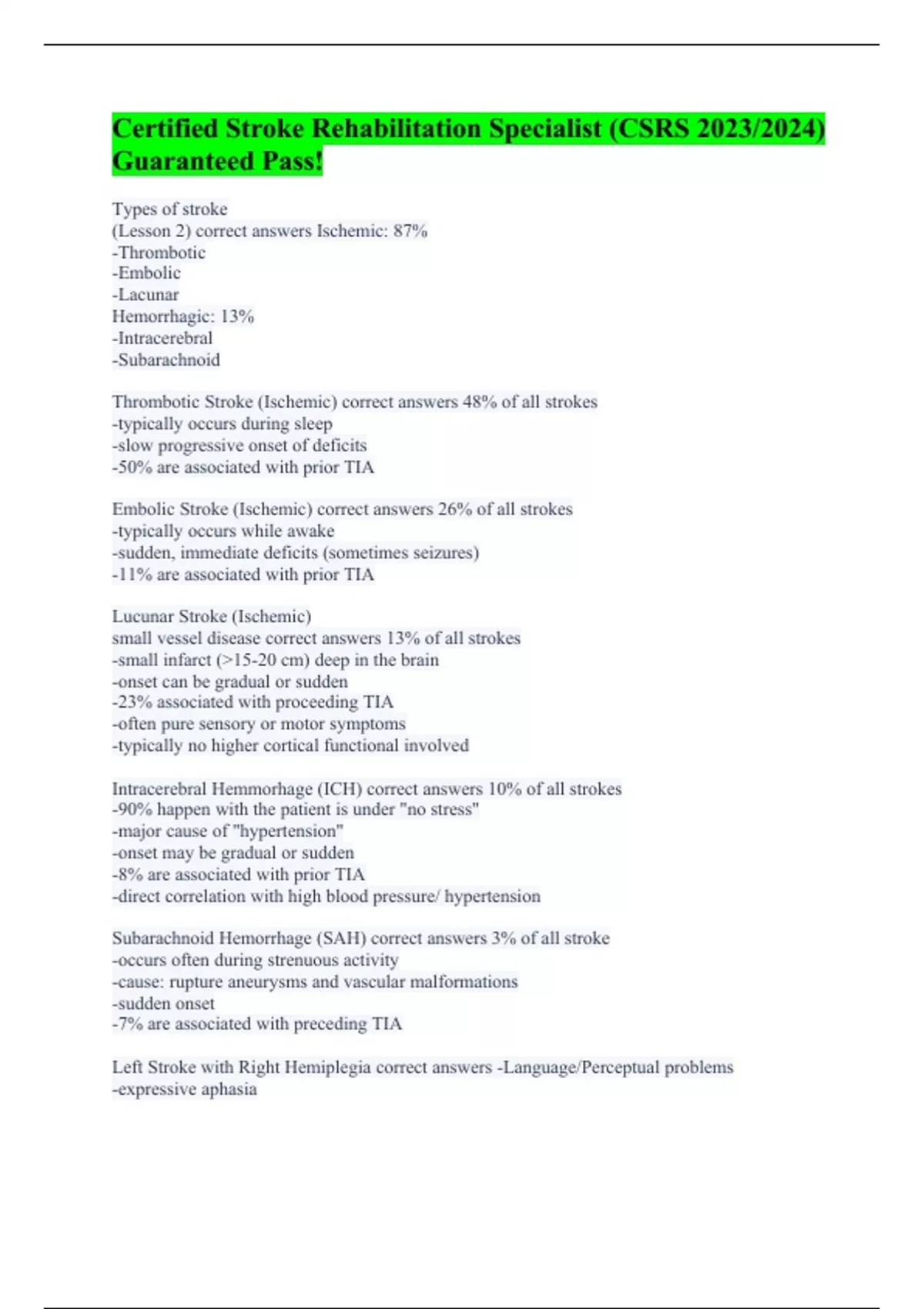 Certified Stroke Rehabilitation Specialist (CSRS 2023/2024) Guaranteed Pass!