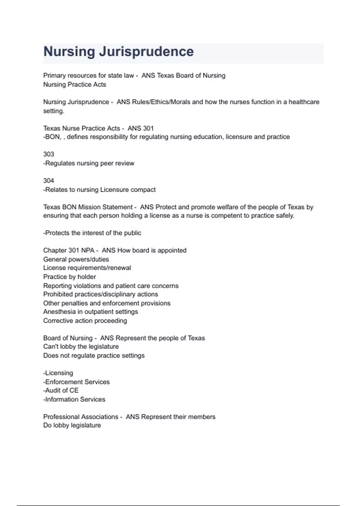 Texas Nurse Practice Act and Nurse Jurisprudence Exam Questions with complete solutions 2024( A+ GRADED 100% VERIFIED).