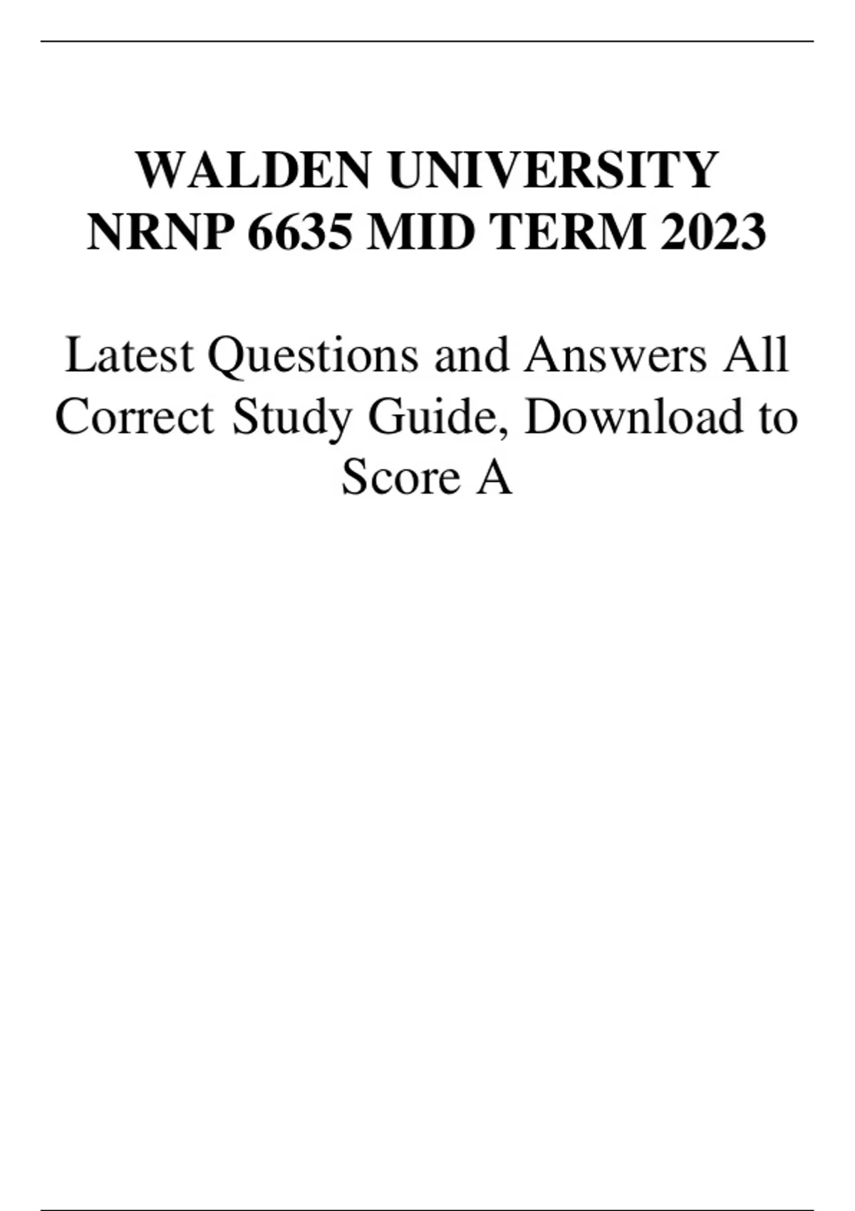 WALDEN UNIVERSITY NRNP 6635 MID TERM 2023 Latest Questions and Answers All Correct Study Guide, Download to Score A Latest Verified Review 2023 Practice Questions and Answers for Exam Preparation, 100% Correct with Explanations, Highly Recommended, Downlo