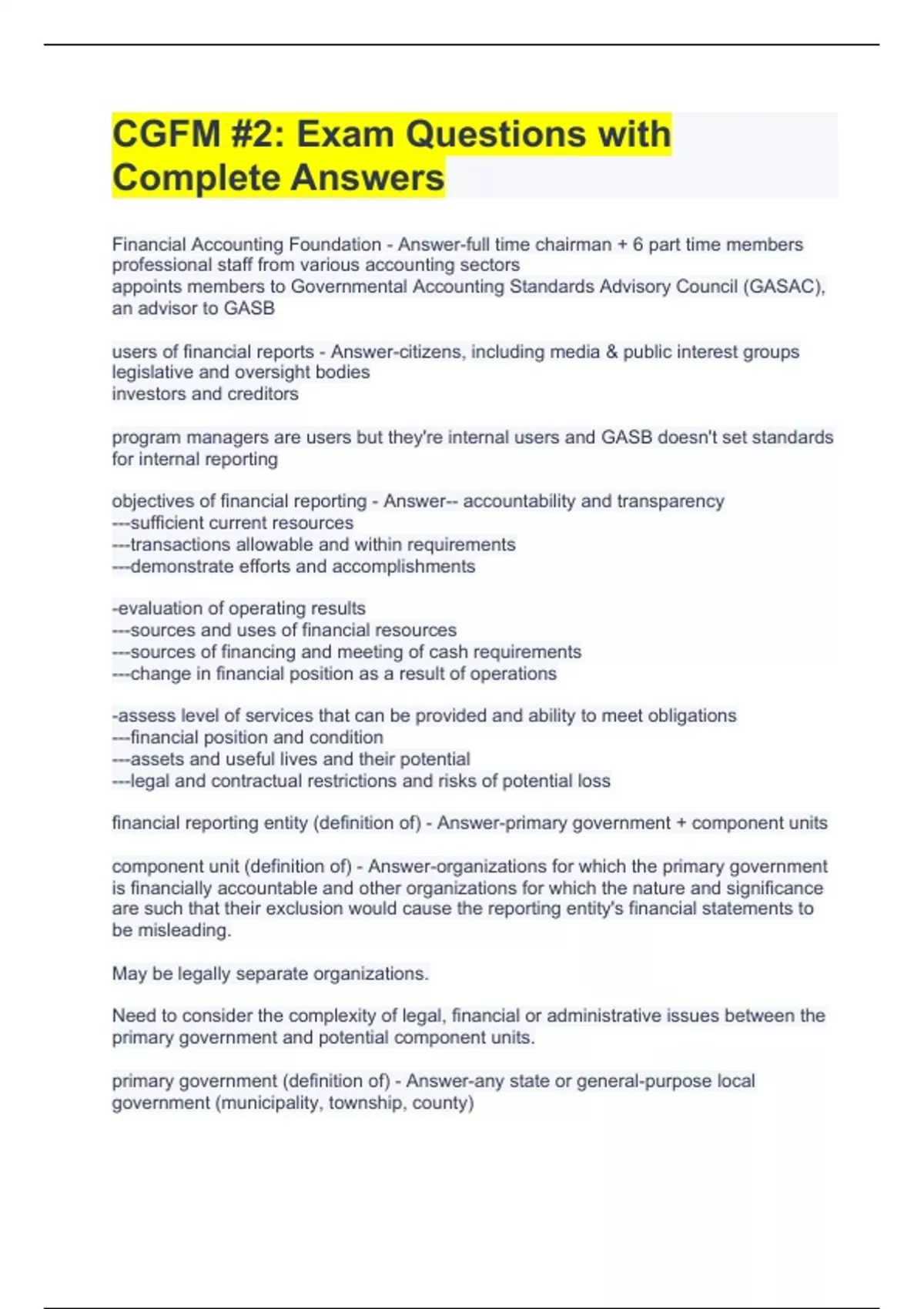 CGFM Exam #2 - Governmental Accounting Exam Questions with Correct Answers
