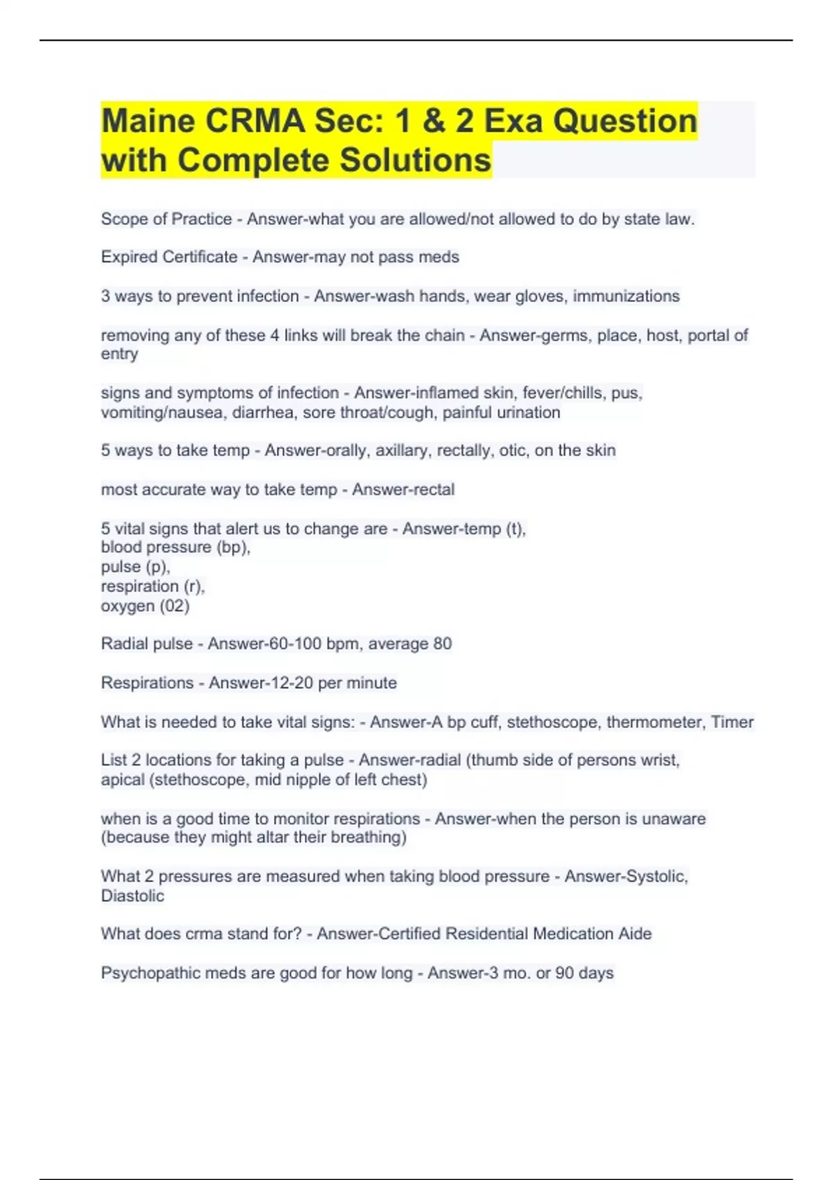 1 Exam (elaborations) Maine CRMA Sec 1 & 2 Exam Question with Complete Solutions 2 Exam (elaborations) Maine CRMA Exam Questions and Answers Latest Update 3 Exam (elaborations) Maine CRMA Certification Exam Questions with Complete Solutions 4 Exam (elaborations) CRMA-Certified Risk Management Assurance Exam Questions and Answers 5 Exam (elabora