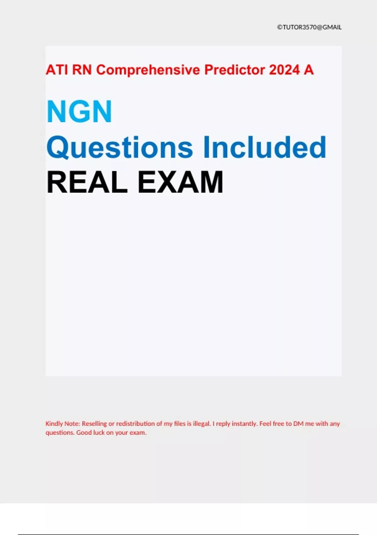 ATI RN Comprehensive Predictor 2024 A NGN Questions Included Complete for 2024