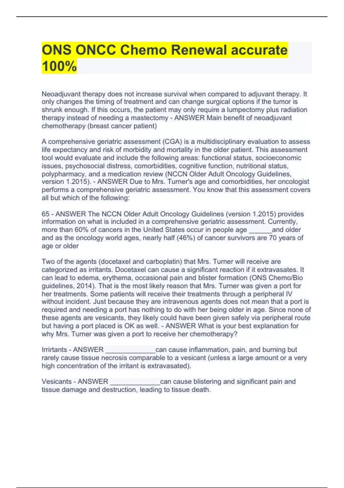 ONS ONCC Chemo Renewal II Correct Questions and Answers!