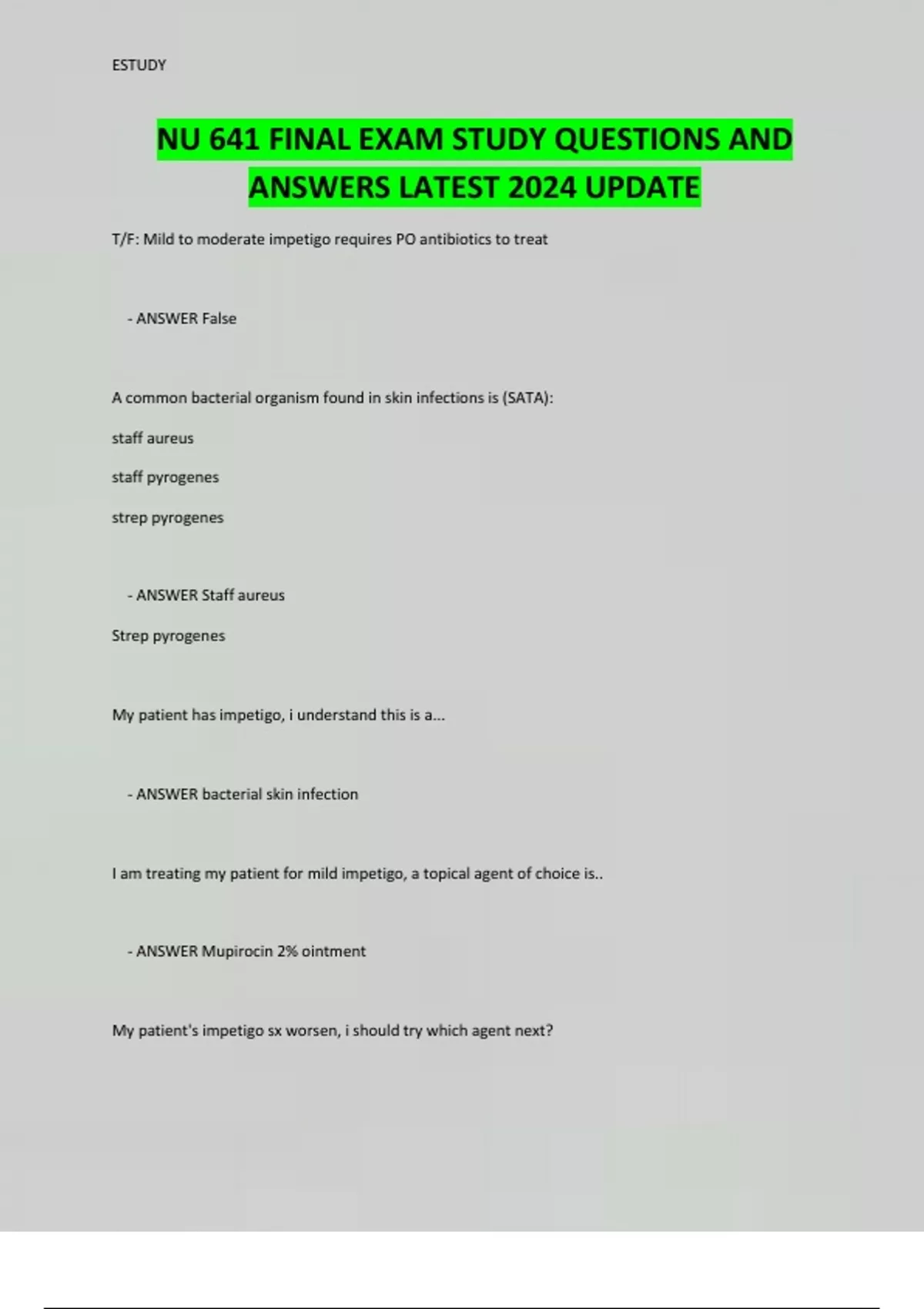 NUR 641E FINAL QUESTIONS AND ANSWERS LATEST 2024 PACKAGE DEAL