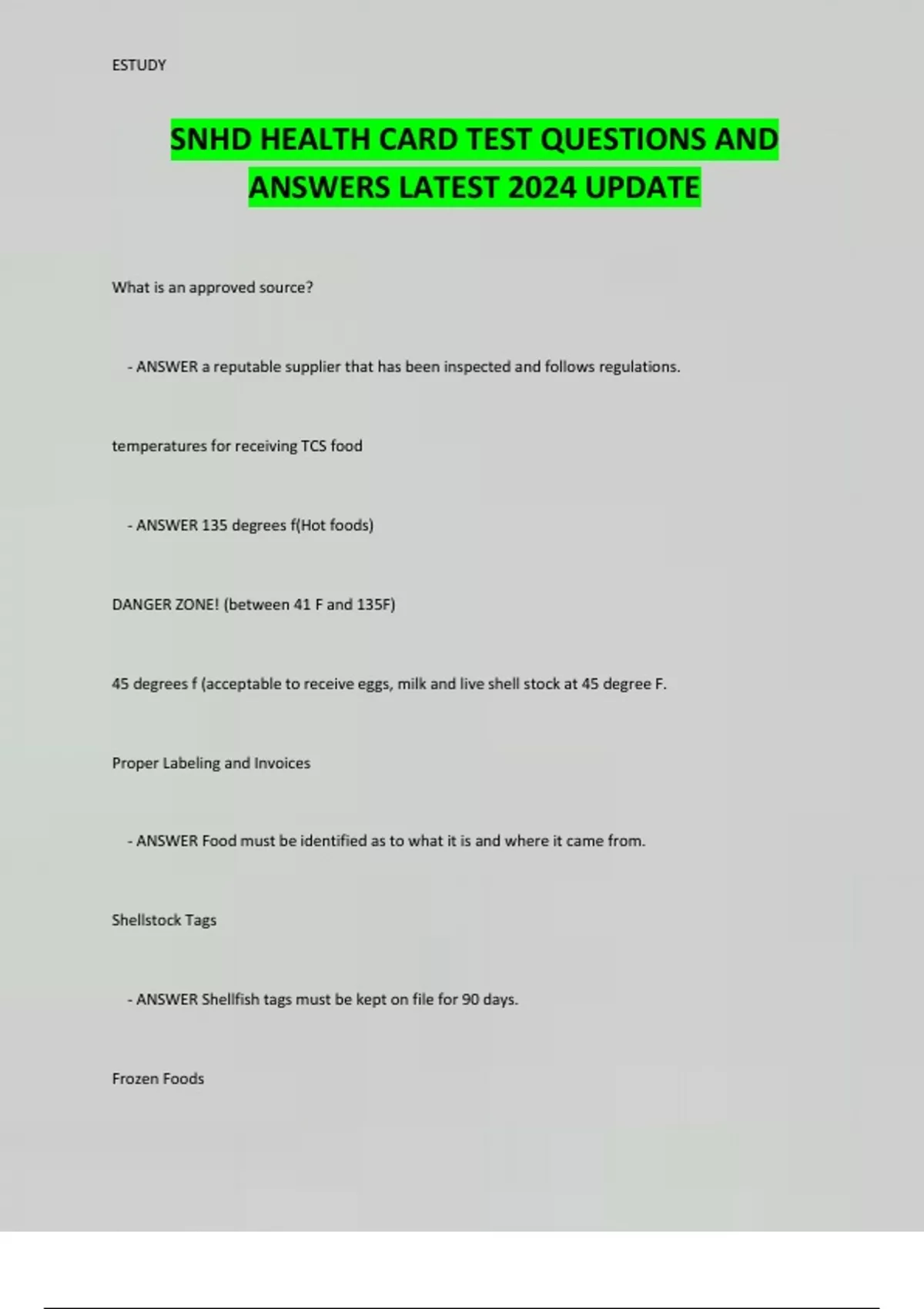 SNHD EXAM QUESTIONS AND ANSWERS LATEST 2024 UPDATED PACKAGE DEAL