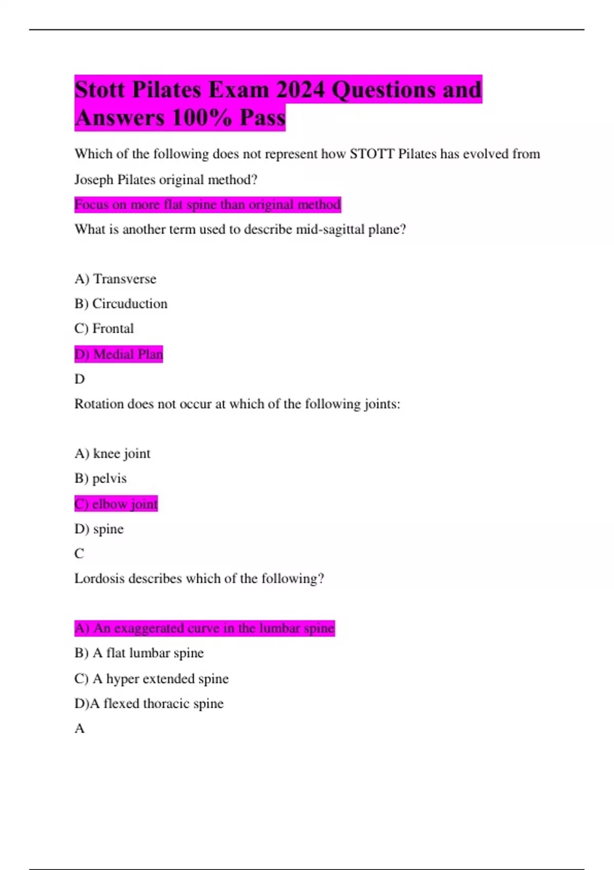 Stott Pilates Exam 2024 Questions and Answers 100% Pass