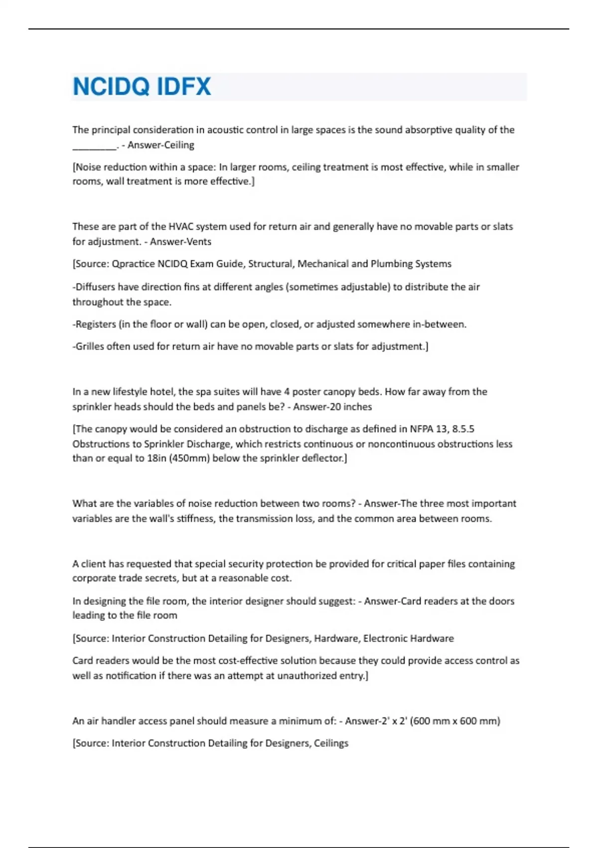 NCIDQ Practice Exam Questions - IDPX Graded A+