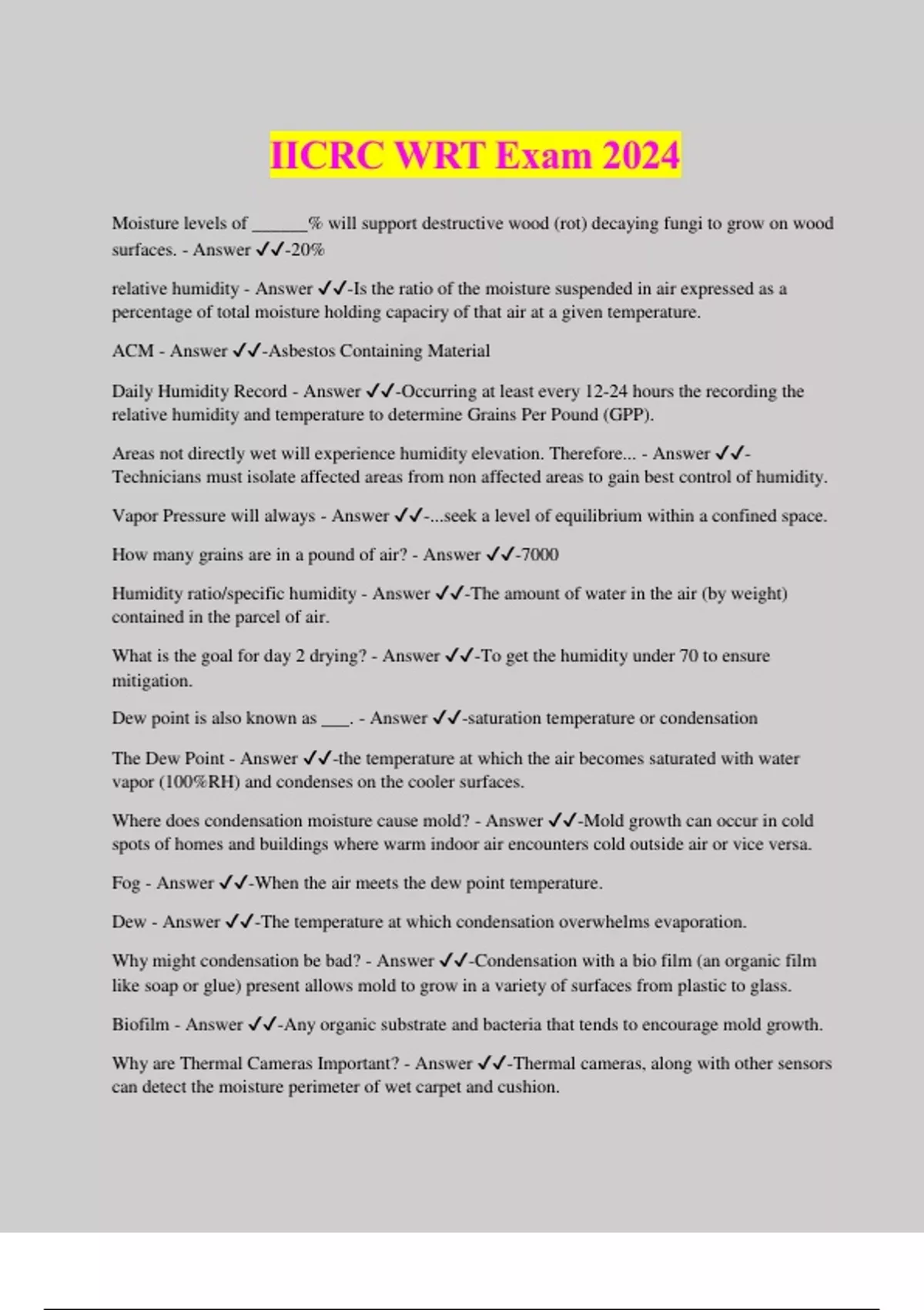 IICRC WRT Bundled Exams Questions and Answers | All Passed | 100% Complete and Updated 2024
