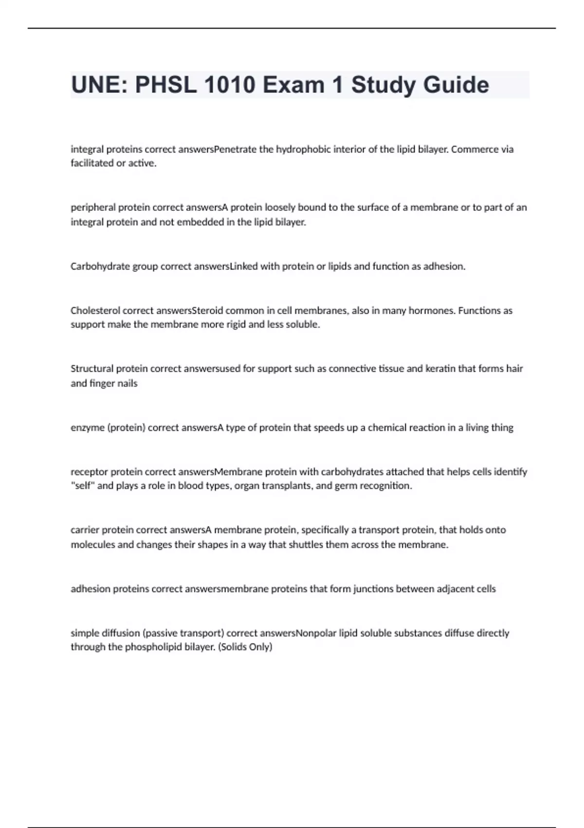 DAL PHYL 1010 Midterm YA EXAM 2024 WITH 100% CORRECT ANSWERS UNE: PHSL 1010 Exam 1 Study Guide with 100% correct