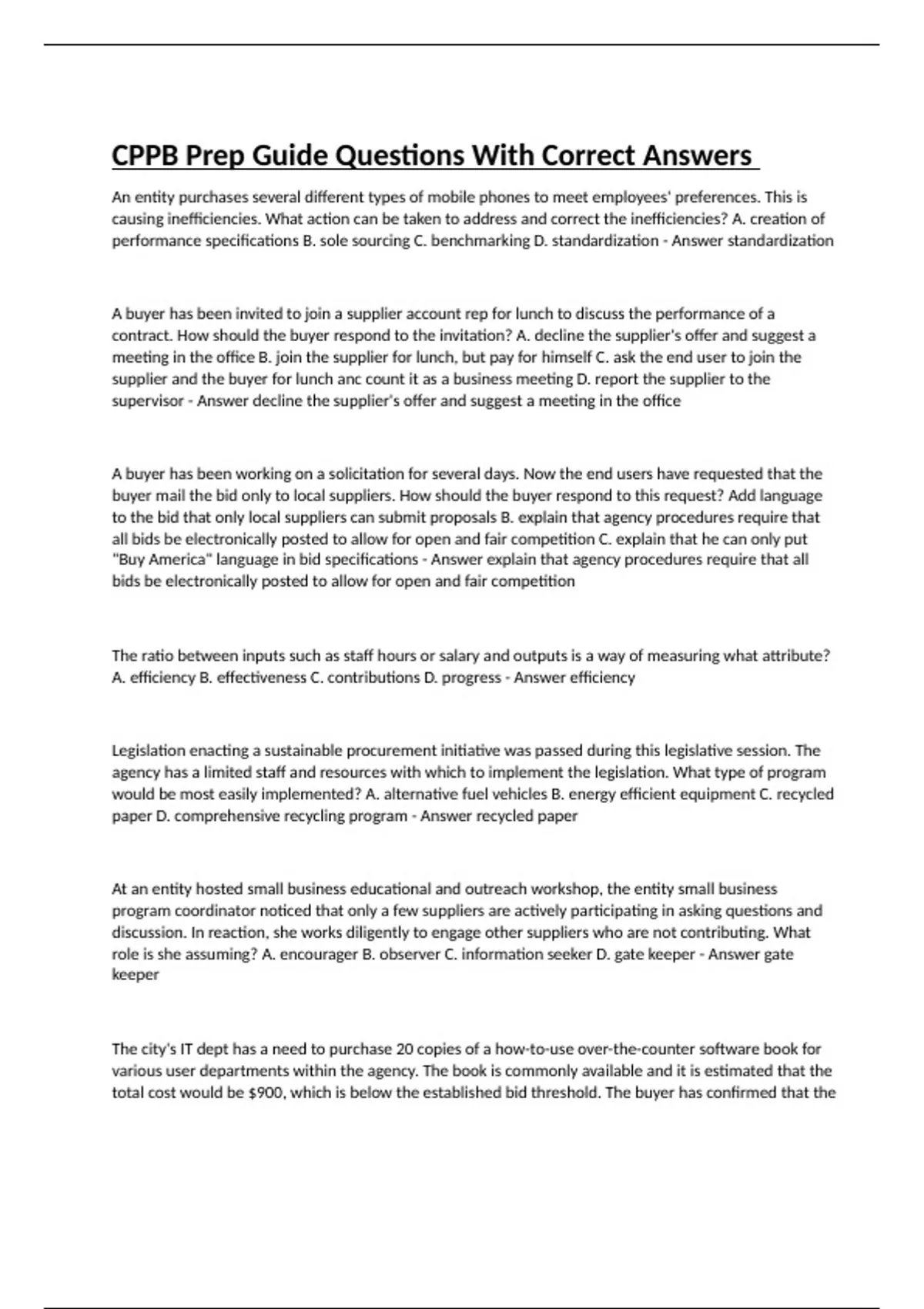CPPB Prep Guide Questions With Correct Answers