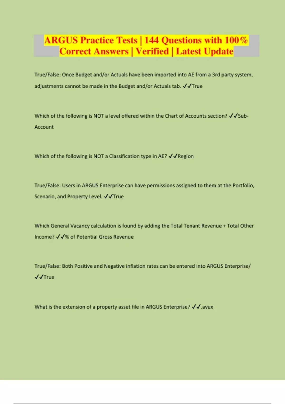 ARGUS Practice Tests | 144 Questions with 100% Correct Answers | Verified | Latest Update