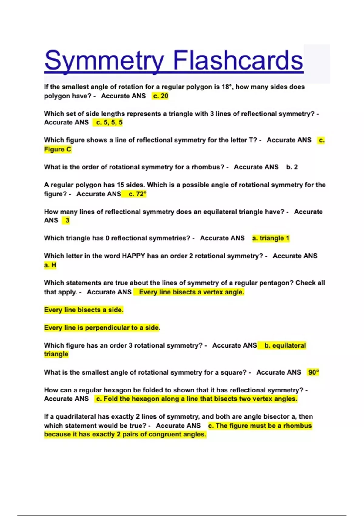 2024 Symmetry Flashcards( Questions & Answers) (Verified ACCURATE Answers)